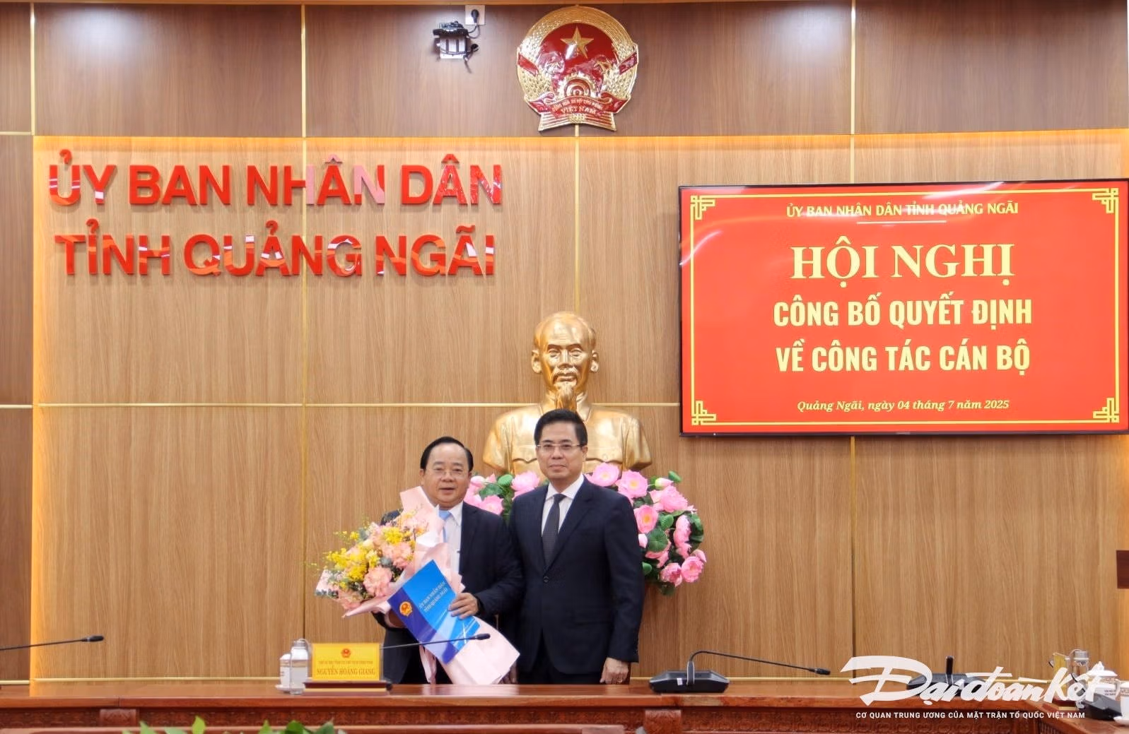 Ngày 4/7, Chủ tịch UBND tỉnh Quảng Ngãi Nguyễn Hoàng Giang chủ trì hội nghị và trao quyết định bổ nhiệm ông Nguyễn Văn Điệu giữ chức Chánh Thanh tra tỉnh Quảng Ngãi.