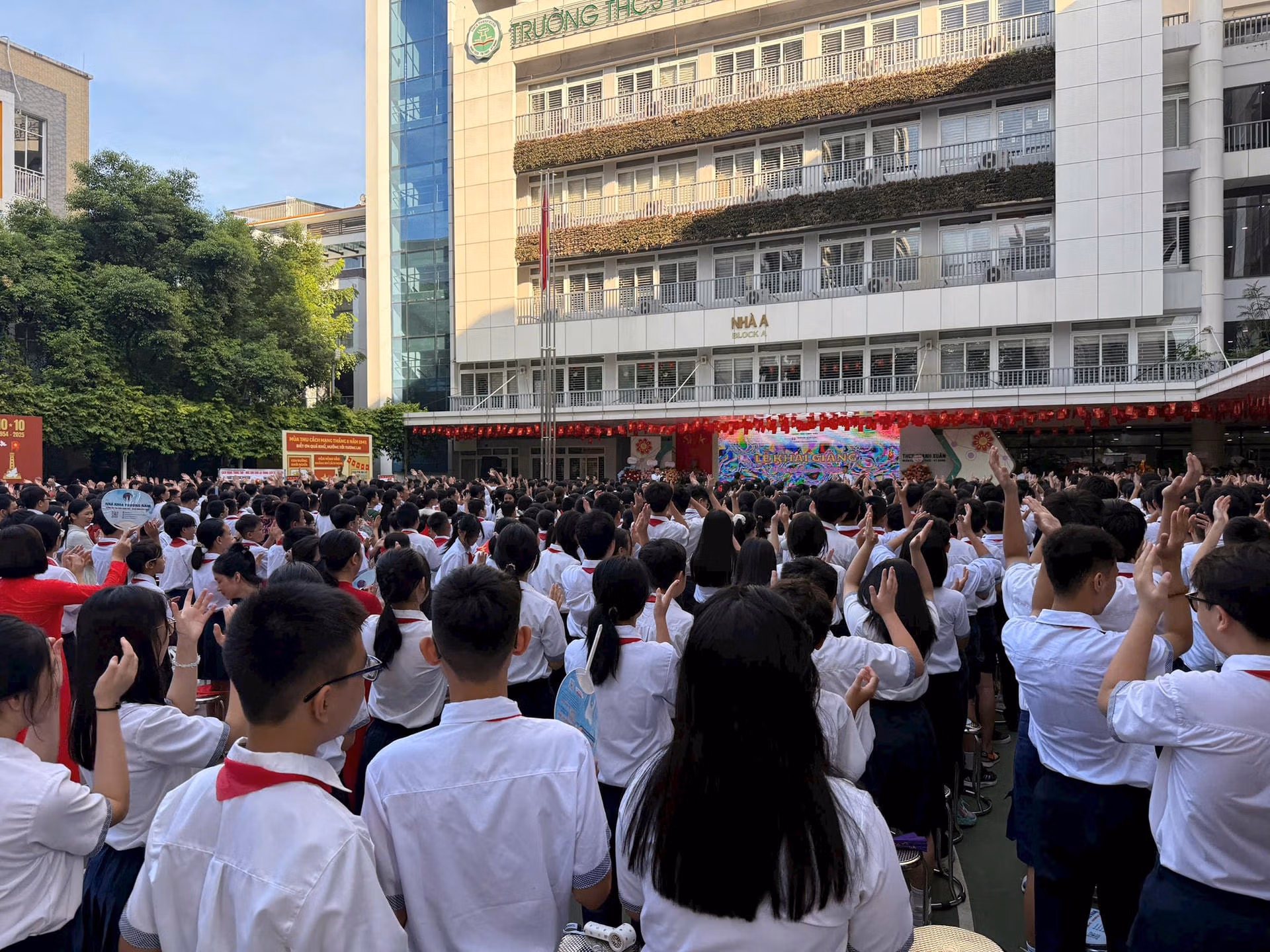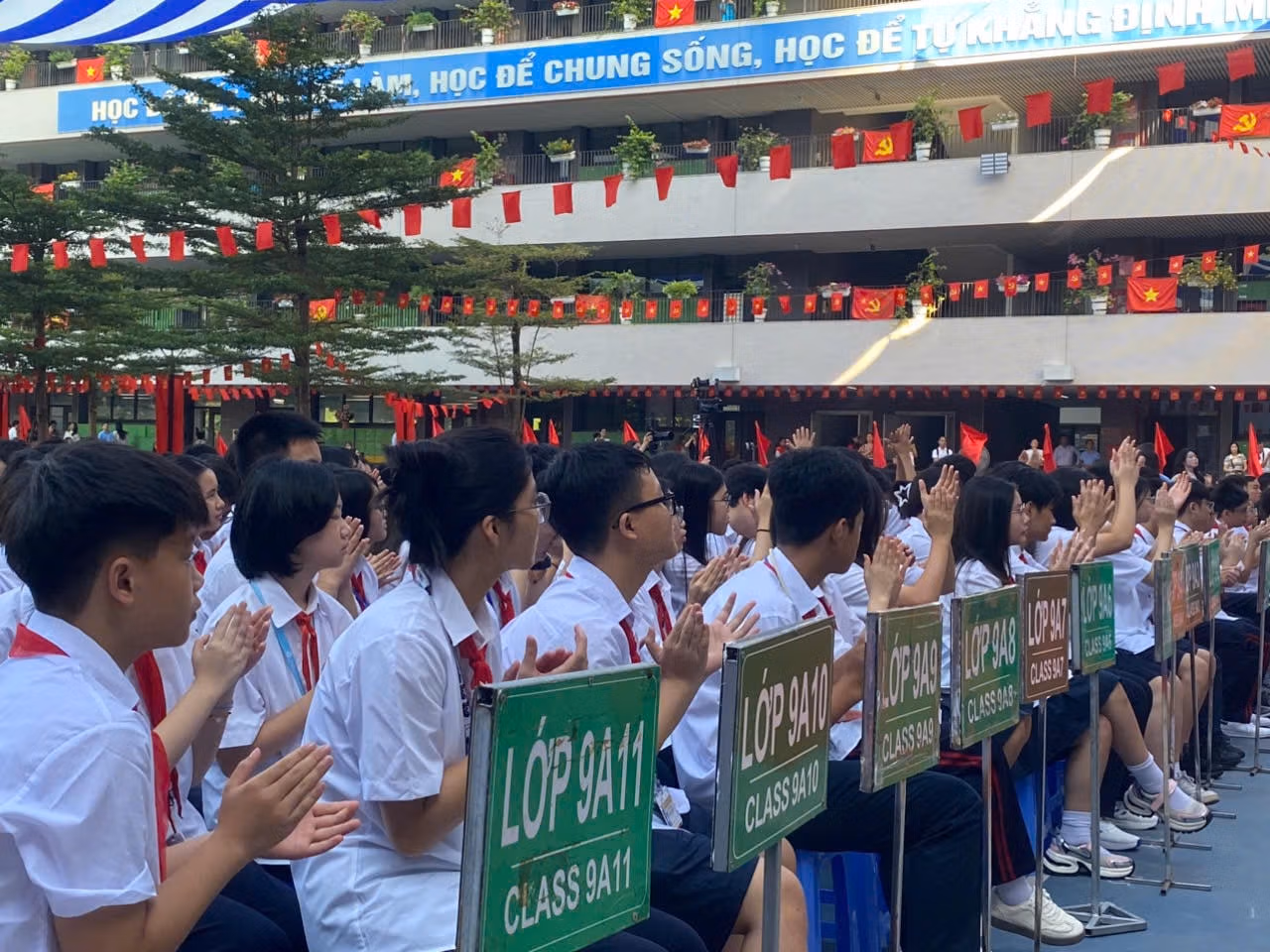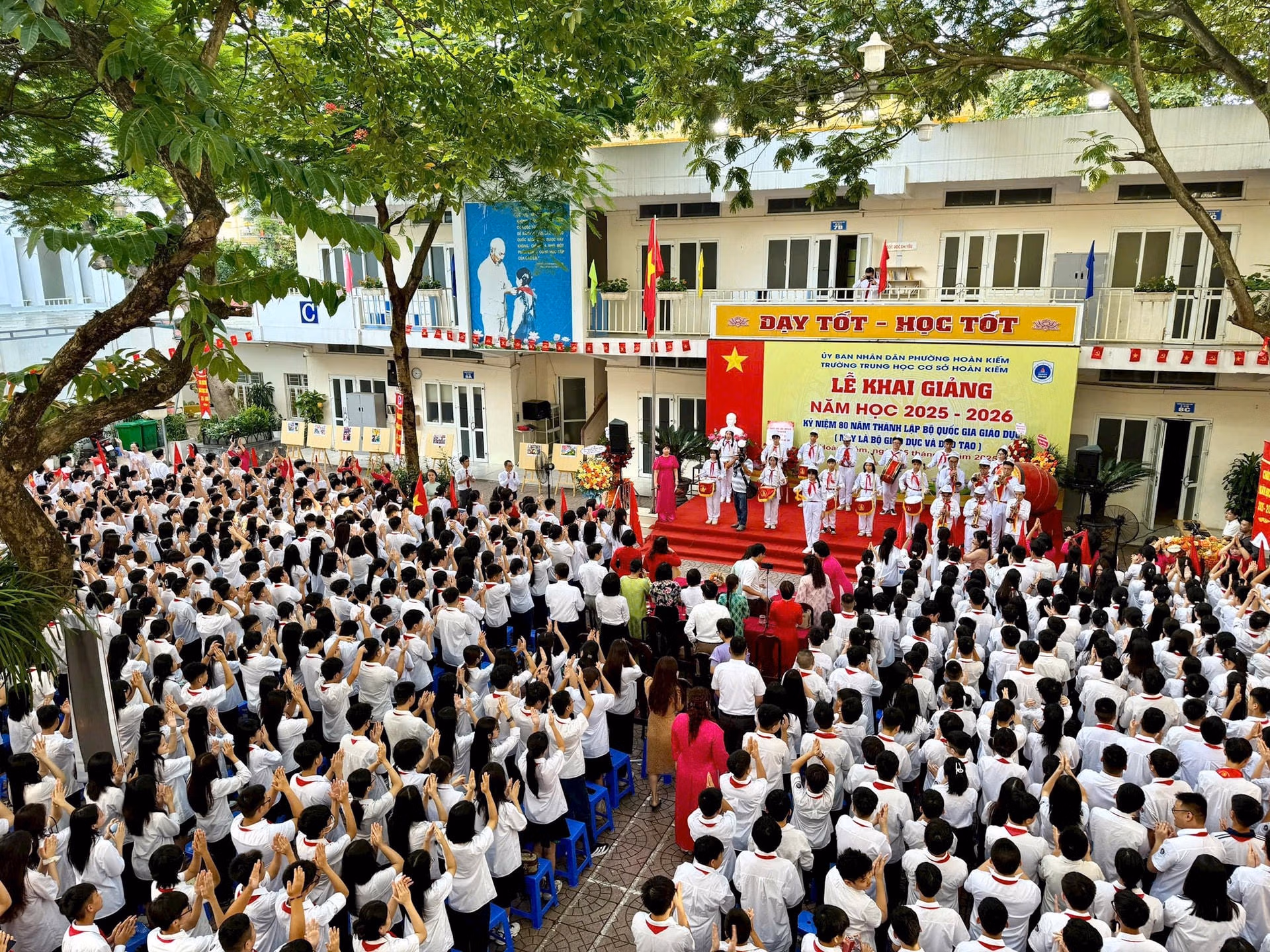 Tại Trường THCS Hoàn Kiếm, toàn thể cán bộ, giáo viên và gần 1000 học sinh hân hoan khai giảng năm học mới 2025-2026.