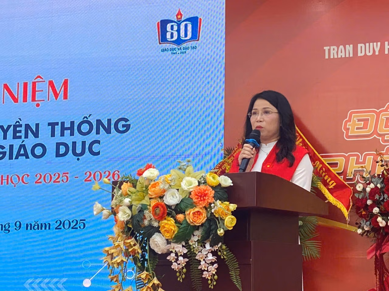 Phát biểu tại lễ khai giảng, NGƯT Lê Kim Anh - Hiệu trưởng Trường THCS Trần Duy Hưng cho biết, năm học mới mở ra với hành trình chinh phục. Trên con đường ấy, mỗi khó khăn không phải là rào cản mà là cơ hội để các em trưởng thành.