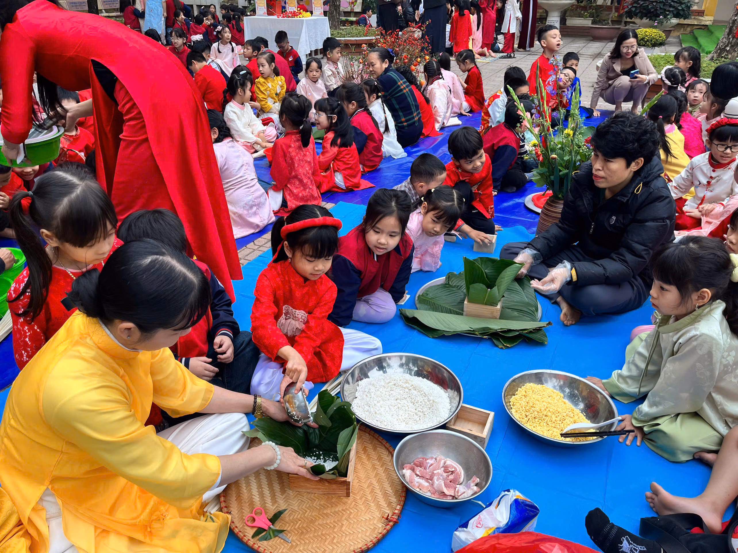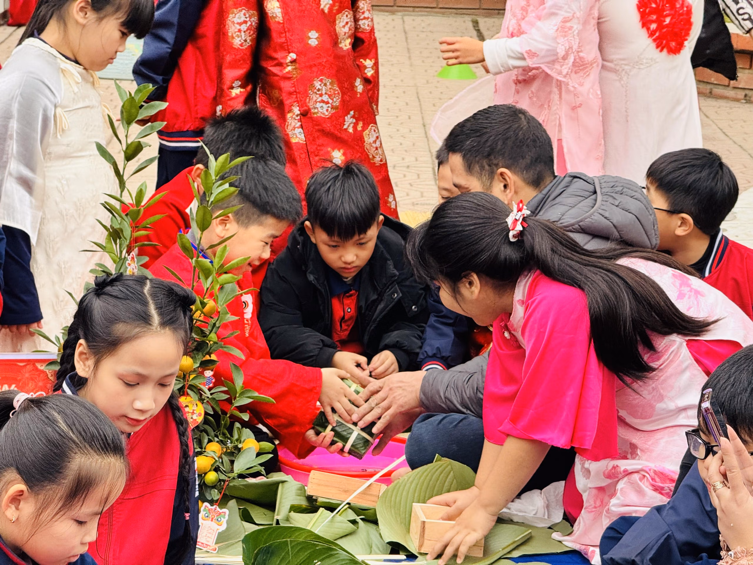 Trong dịp này, nhà trường tổ chức ngày hội gói bánh chưng với rất nhiều hoạt động ý nghĩa như: Gói bánh chưng, làm bưu thiếp chúc Tết, làm bao lì xì, vẽ tranh thư pháp,...