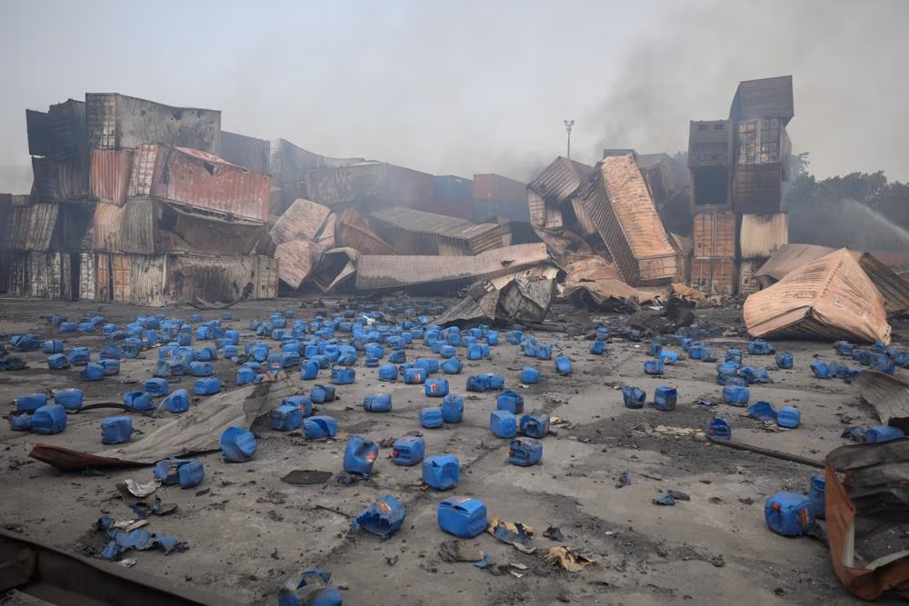 Các nhà chức trách cho biết có hơn 4.000 container tại tổng kho, trong đó có khoảng 1.000 container chứa đầy nguyên liệu, bao gồm cả hóa chất.
