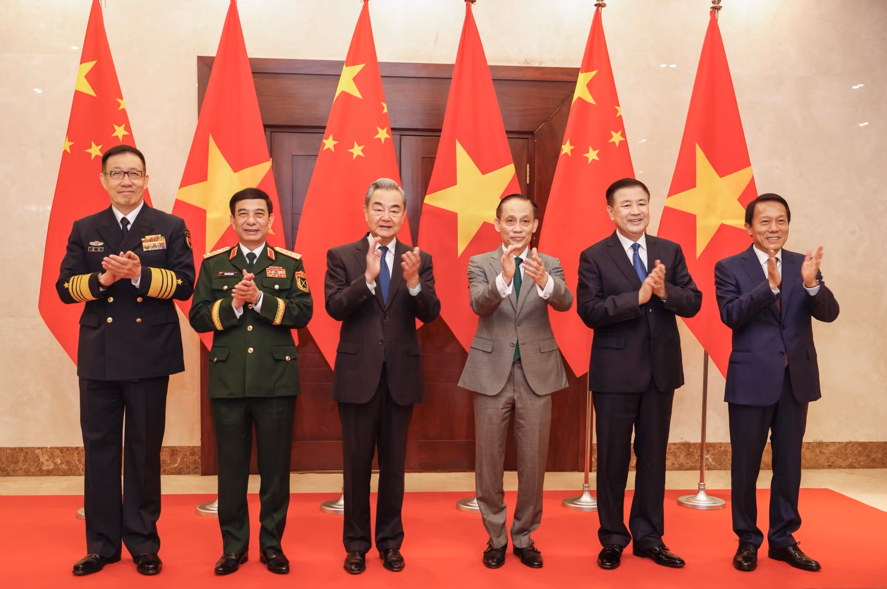 Chúc mừng những thành tựu to lớn mà Trung Quốc đã đạt được dưới sự lãnh đạo của Trung ương Đảng Cộng sản Trung Quốc do đồng chí Tập Cận Bình làm hạt nhân, ba Bộ trưởng phía Việt Nam khẳng định, Đảng và Nhà nước Việt Nam luôn coi phát triển quan hệ với Trung Quốc là chủ trương nhất quán, yêu cầu khách quan, lựa chọn chiến lược, tự nhiên và ưu tiên hàng đầu trong chính sách đối ngoại độc lập, tự chủ, tự cường, đa phương hóa, đa dạng hóa và chính sách quốc phòng “4 không”; nhất quán thực hiện chính sách “một Trung Quốc”, ủng hộ và sẵn sàng tham gia phù hợp các sáng kiến của Trung Quốc về phát triển, an ninh, văn minh và quản trị toàn cầu.