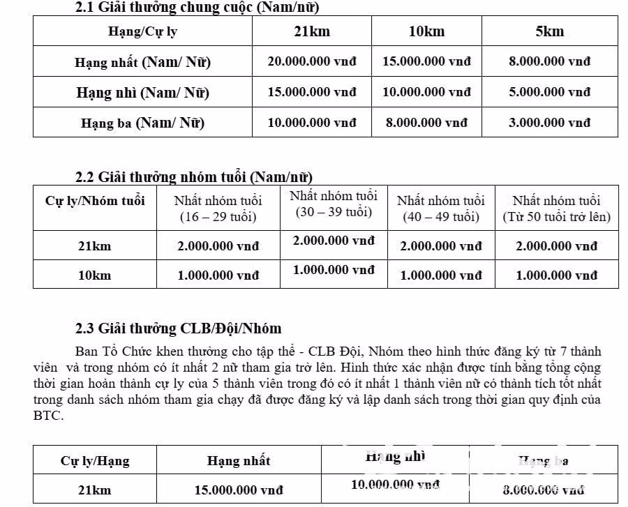 Giải gồm các cự ly chạy 5km, 10km, 21km và cự ly đi bộ là 3,5km xuất phất từ Đại lộ Lê Lợi (Quận 1, TP Hồ Chí Minh). Các vận động viên có dịp được sải những bước chân trên các cung đường đẹp nhất ở ngay trung tâm thành phố, qua nhiều địa danh nổi tiếng, như: Đại lộ Nguyễn Huệ, Cột cờ Thủ Ngữ, đường Tôn Đức Thắng bên sông Sài Gòn, cầu Ba Son, Quảng trường Thủ Thiêm,…