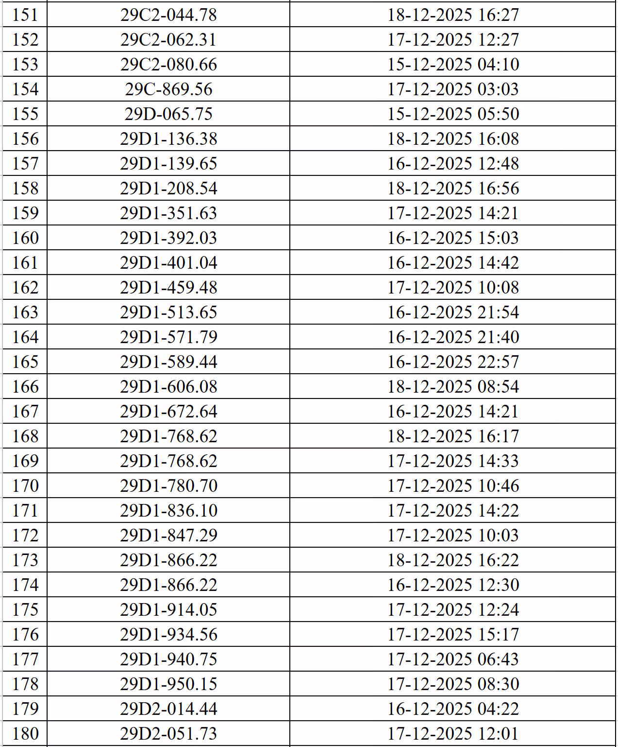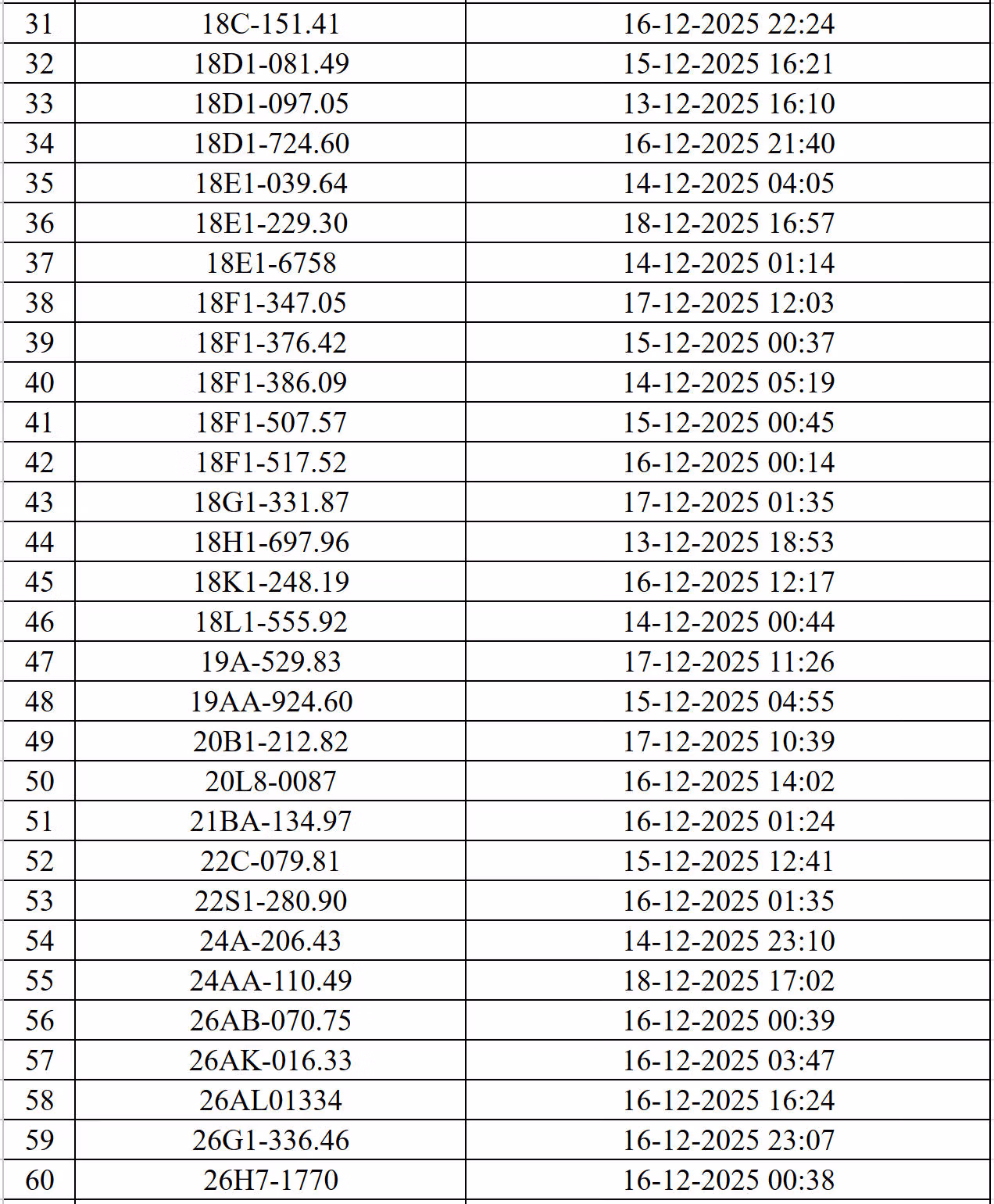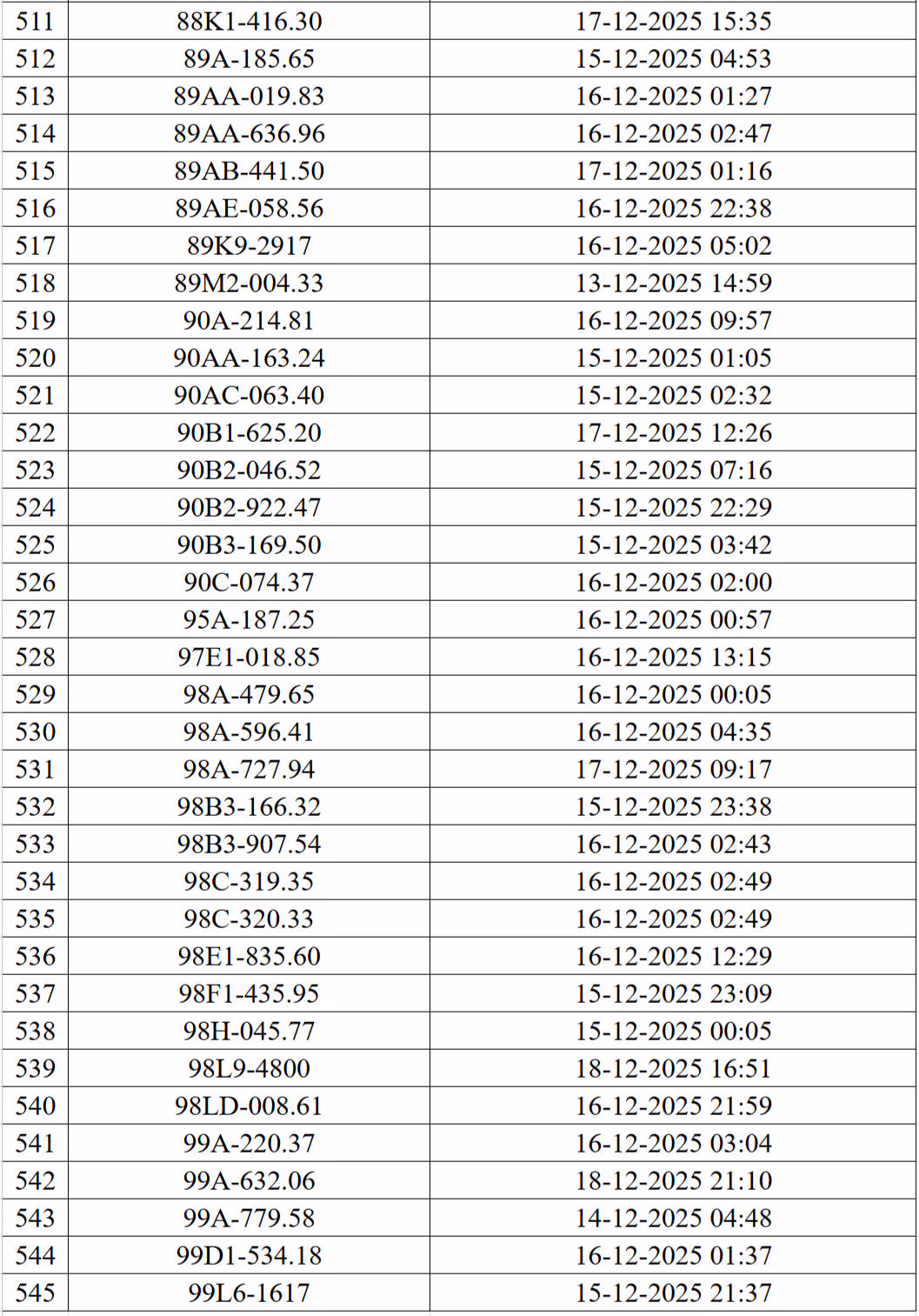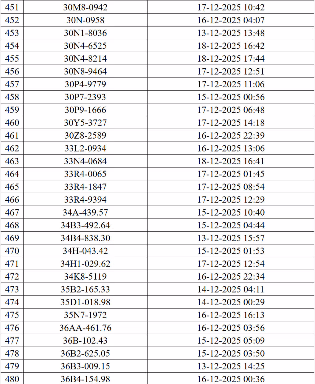 Danh sách phương tiện vi phạm bị Camera AI ghi hìnhL