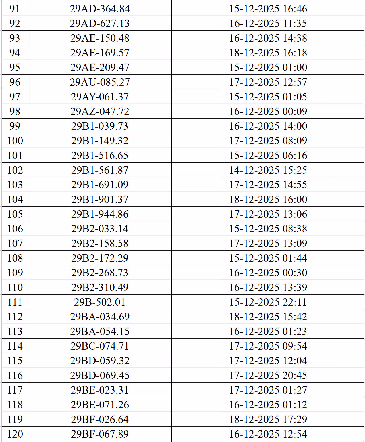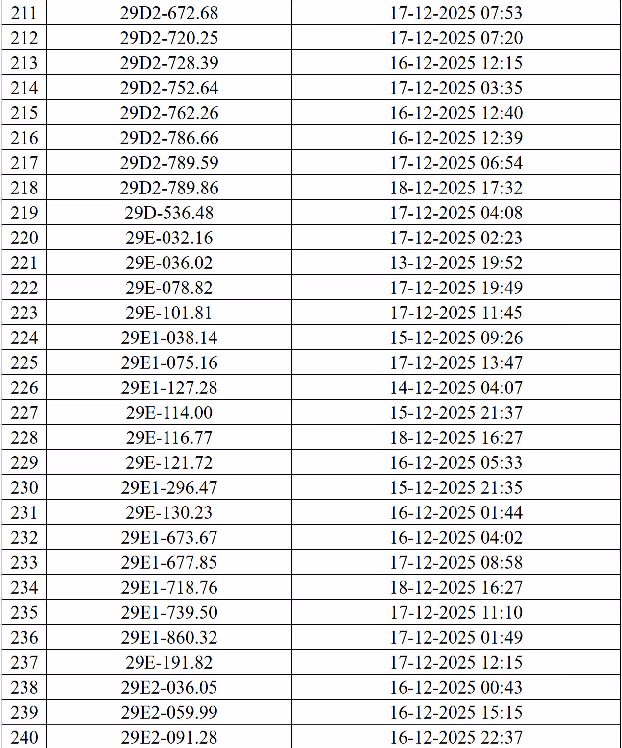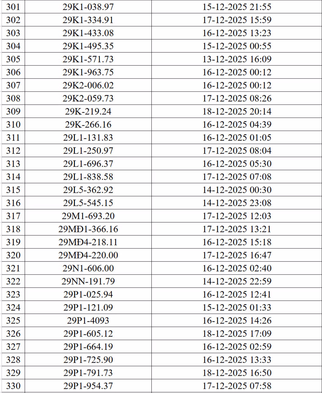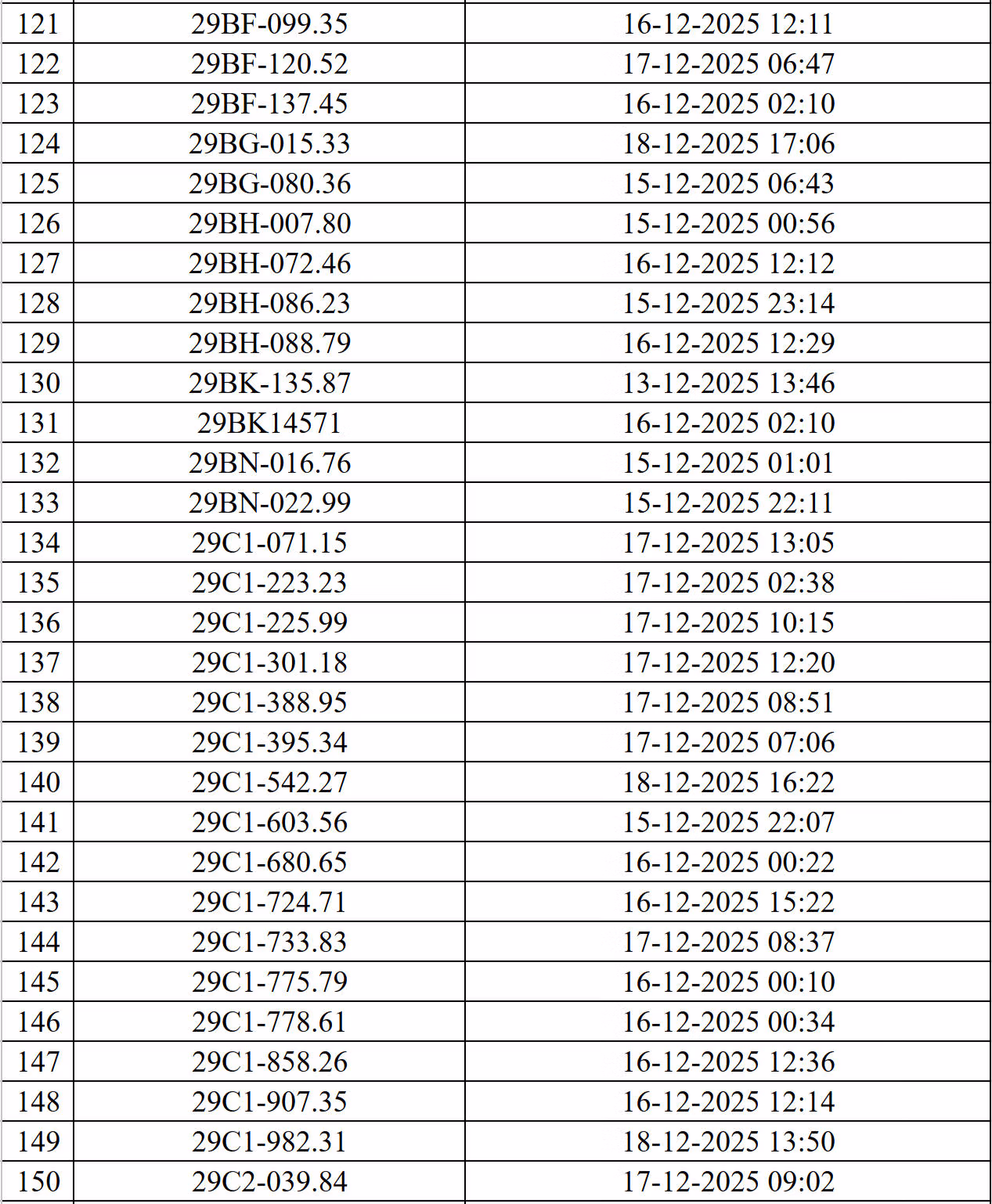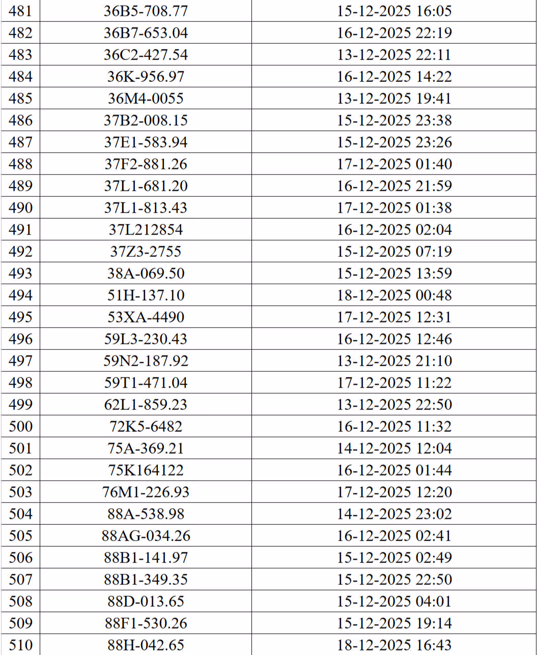 Danh sách phương tiện vi phạm bị Camera AI ghi hìnhL