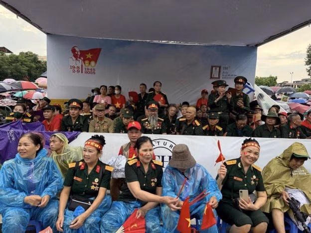 Niềm tự hào của người cựu chiến binh chờ xem duyệt binh ở khu vực đường Hùng Vương. Ông hào hứng bắt nhịp cho toàn bộ những người xung quanh cùng hát “Như có Bác Hồ trong ngày vui đại thắng”.