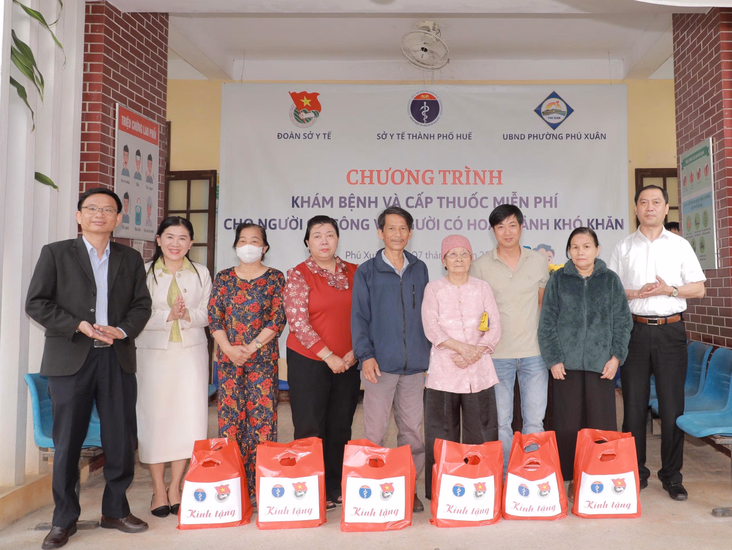 Ngày 7/3, Đoàn Thanh niên Sở Y tế thành phố Huế phối hợp với các đơn vị liên quan tổ chức chương trình khám bệnh, tư vấn sức khỏe và cấp phát thuốc miễn phí cho người dân có hoàn cảnh khó khăn tại phường Phú Xuân.
