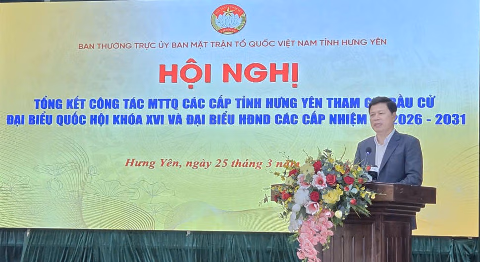 Ngày 25/3, Ban Thường trực Ủy ban MTTQ Việt Nam tỉnh Hưng Yên tổ chức hội nghị tổng kết công tác Mặt trận tham gia bầu cử đại biểu Quốc hội khóa XVI, đại biểu HĐND các cấp nhiệm kỳ 2026 - 2031.