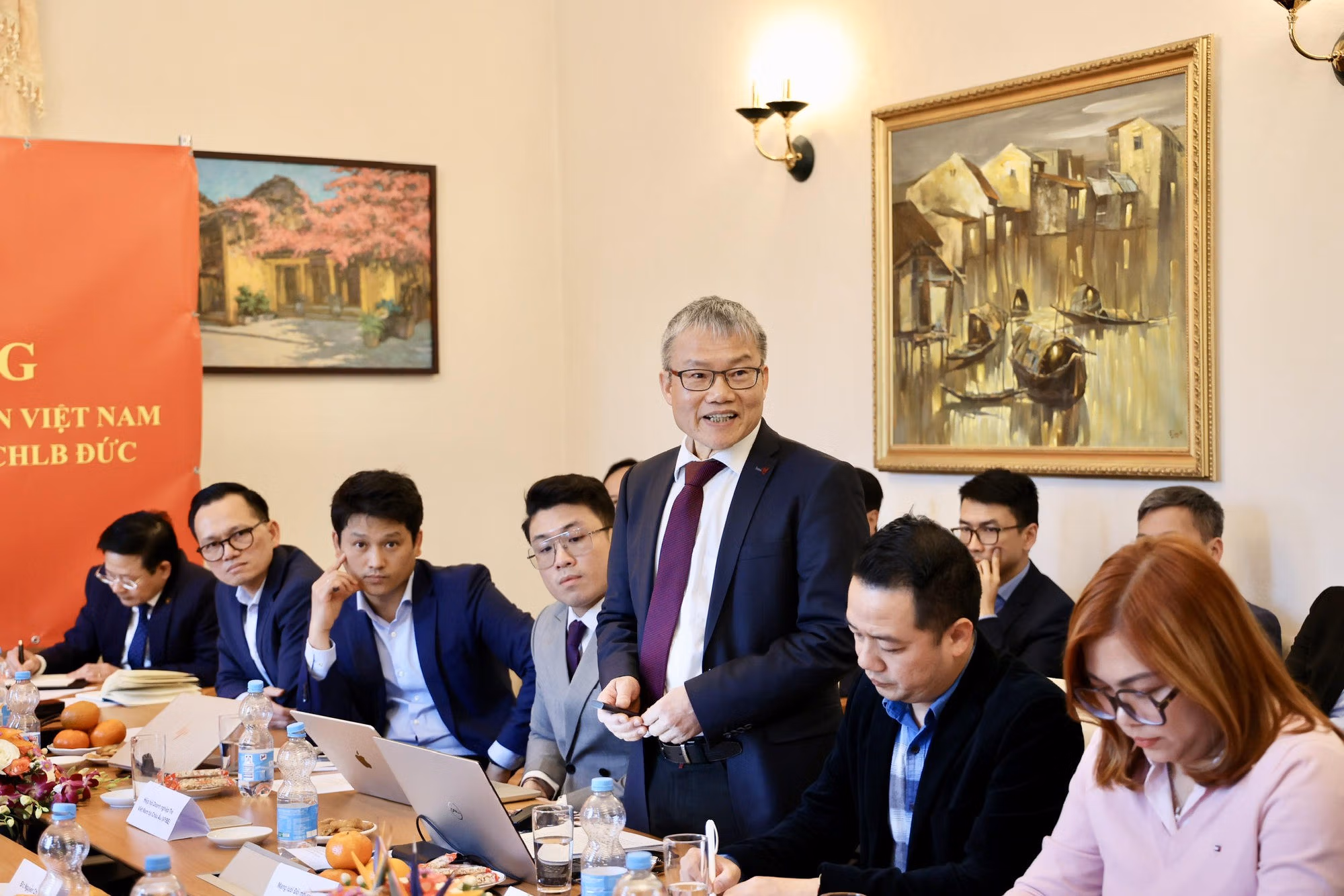 Tại buổi gặp mặt, Đại sứ Việt Nam tại Đức Nguyễn Đắc Thành đã báo cáo Phó Thủ tướng về các mặt công tác của Đại sứ quán thời gian qua, đặc biệt là công tác thúc đẩy quan hệ song phương và công tác đối với người Việt Nam ở nước ngoài. Đại sứ khẳng định tập thể cán bộ, nhân viên Đại sứ quán sẽ nỗ lực để hoàn thành các nhiệm vụ được Đảng, Nhà nước giao phó; thúc đẩy toàn diện hơn nữa các mặt hợp tác song phương để đưa quan hệ Việt Nam - Đức ngày càng phát triển.