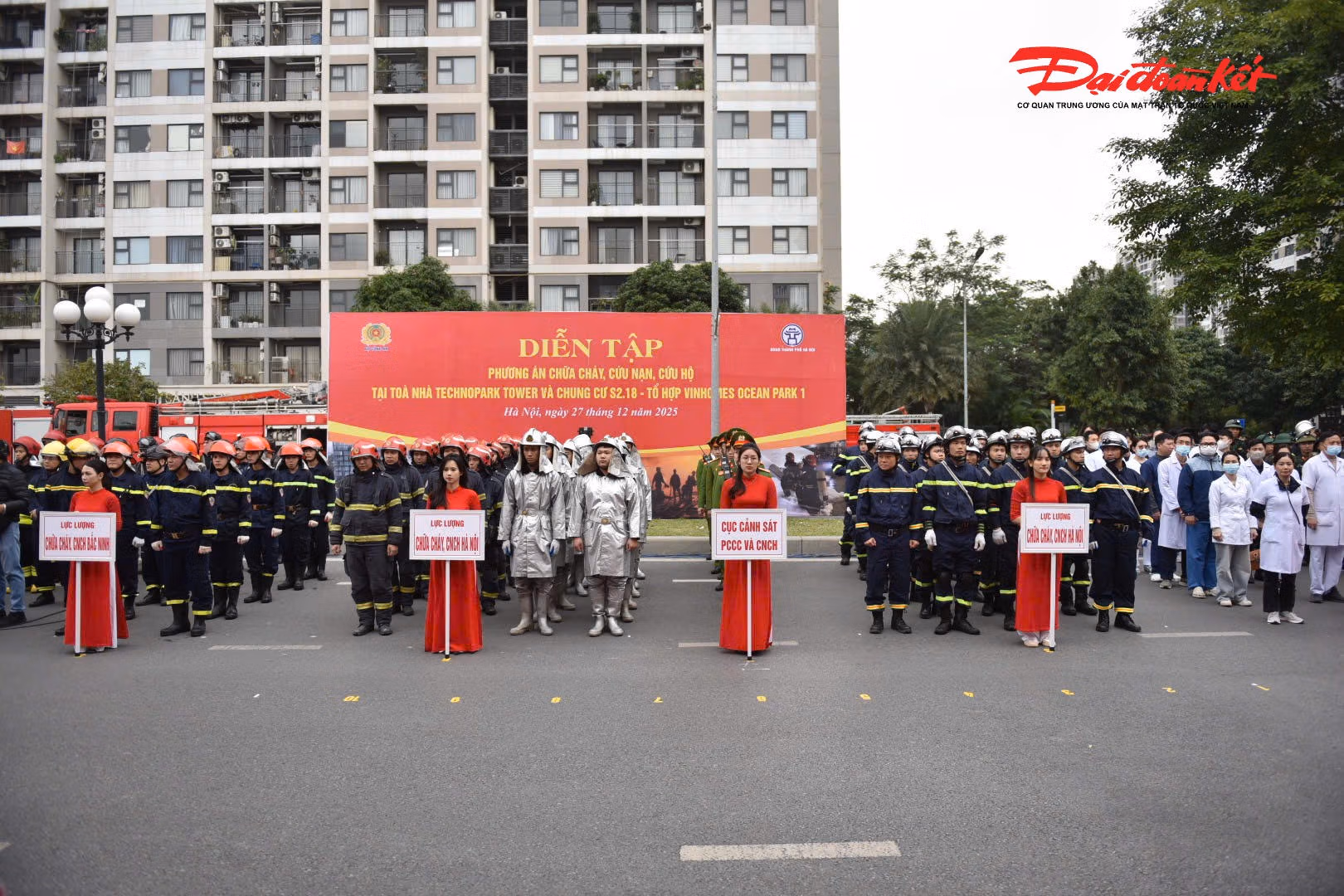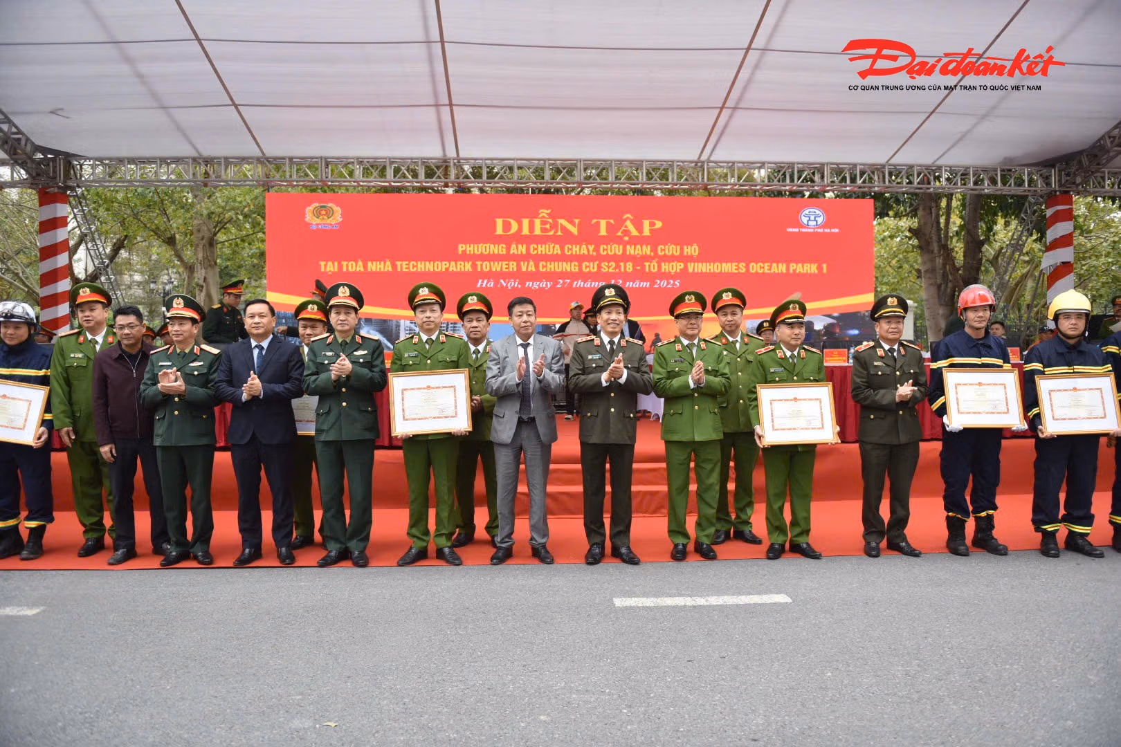 Sáng 27/12, Bộ Công an phối hợp với UBND TP Hà Nội và công an của 3 tỉnh, thành phố tổ chức diễn tập phương án chữa cháy và cứu nạn cứu hộ tại khu đô thị ở xã Gia Lâm (Hà Nội).