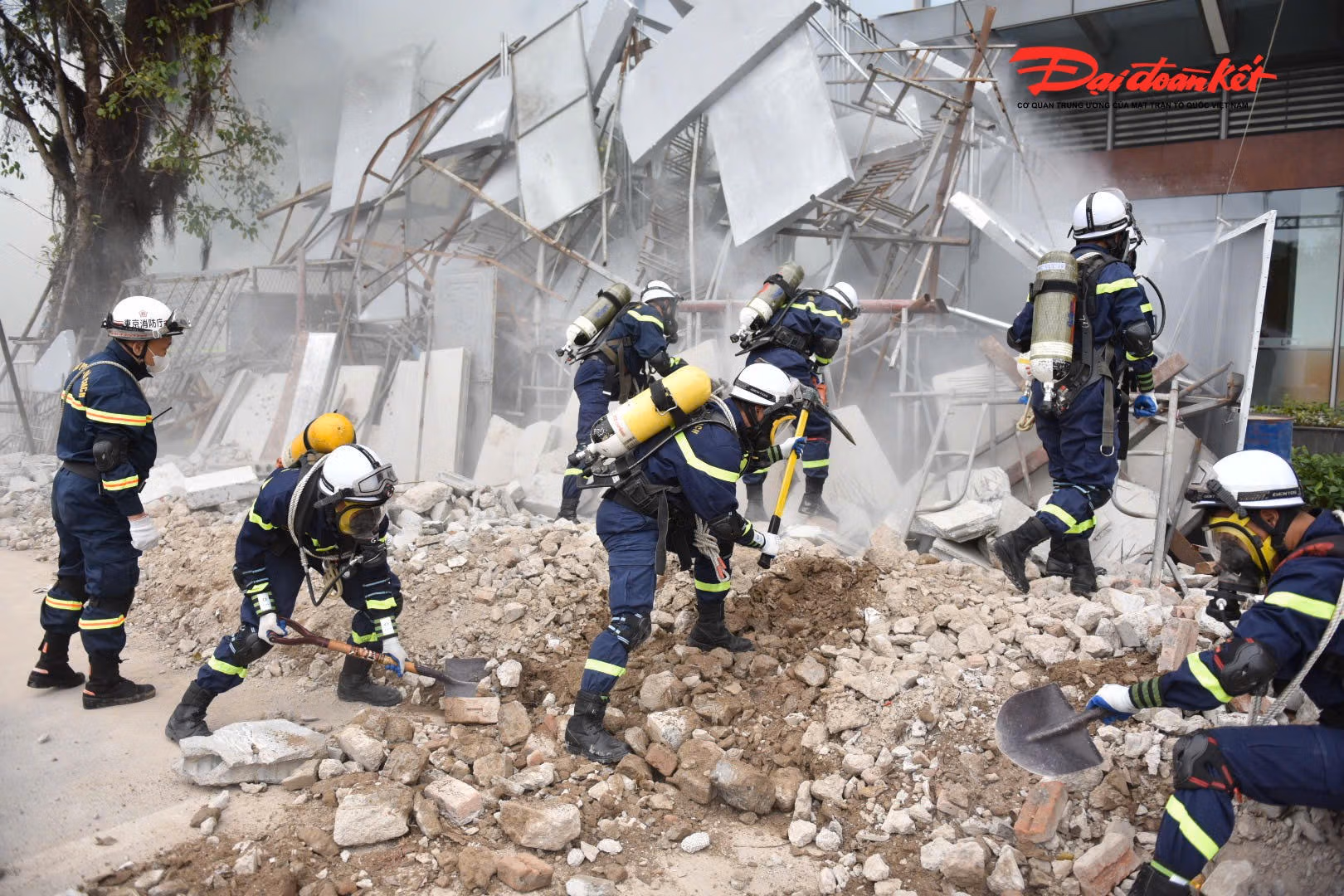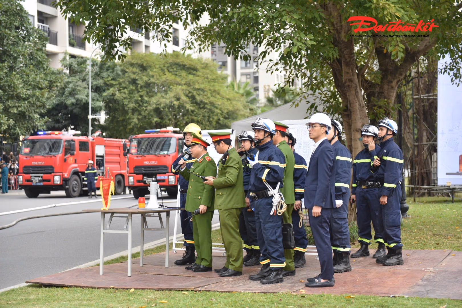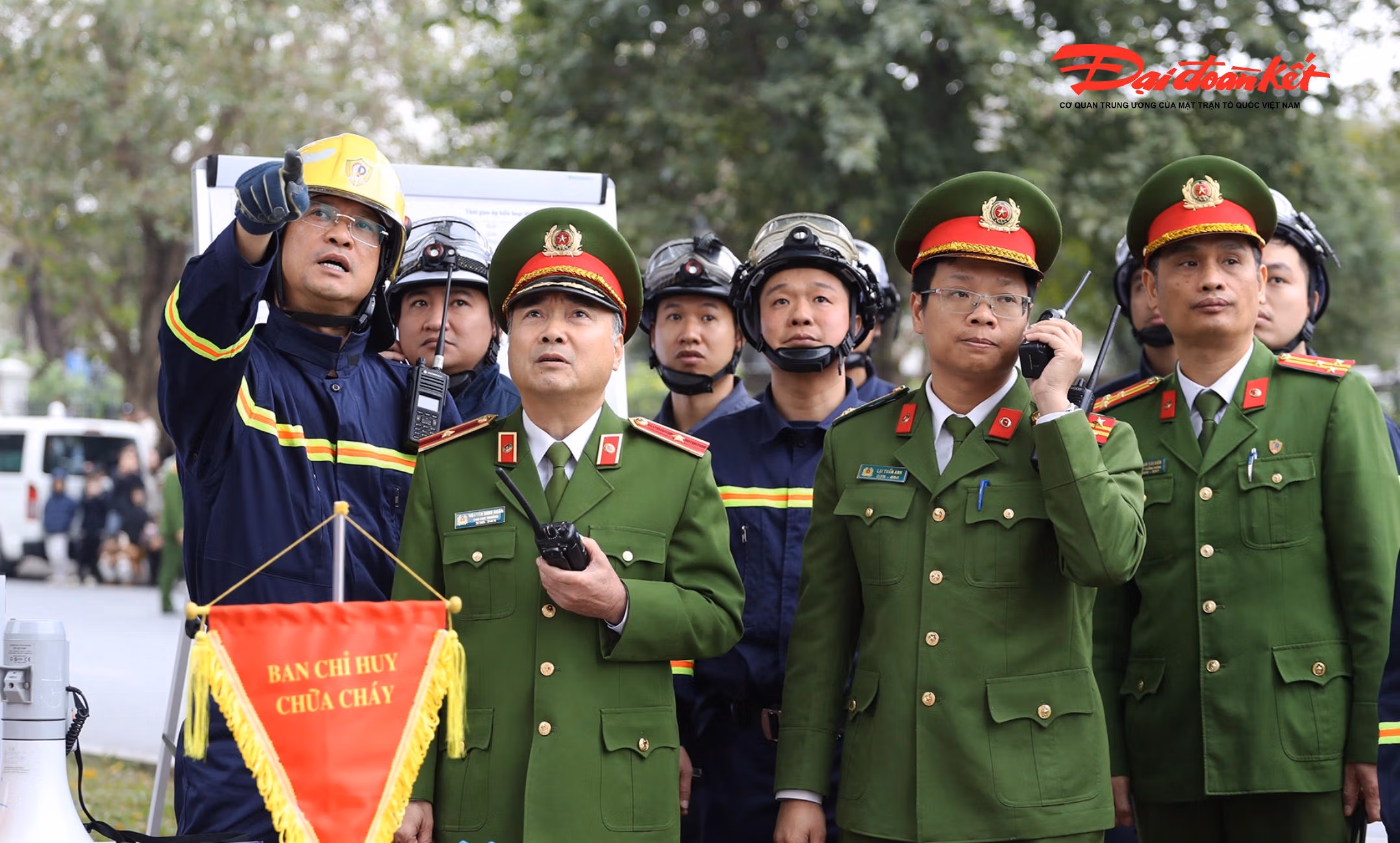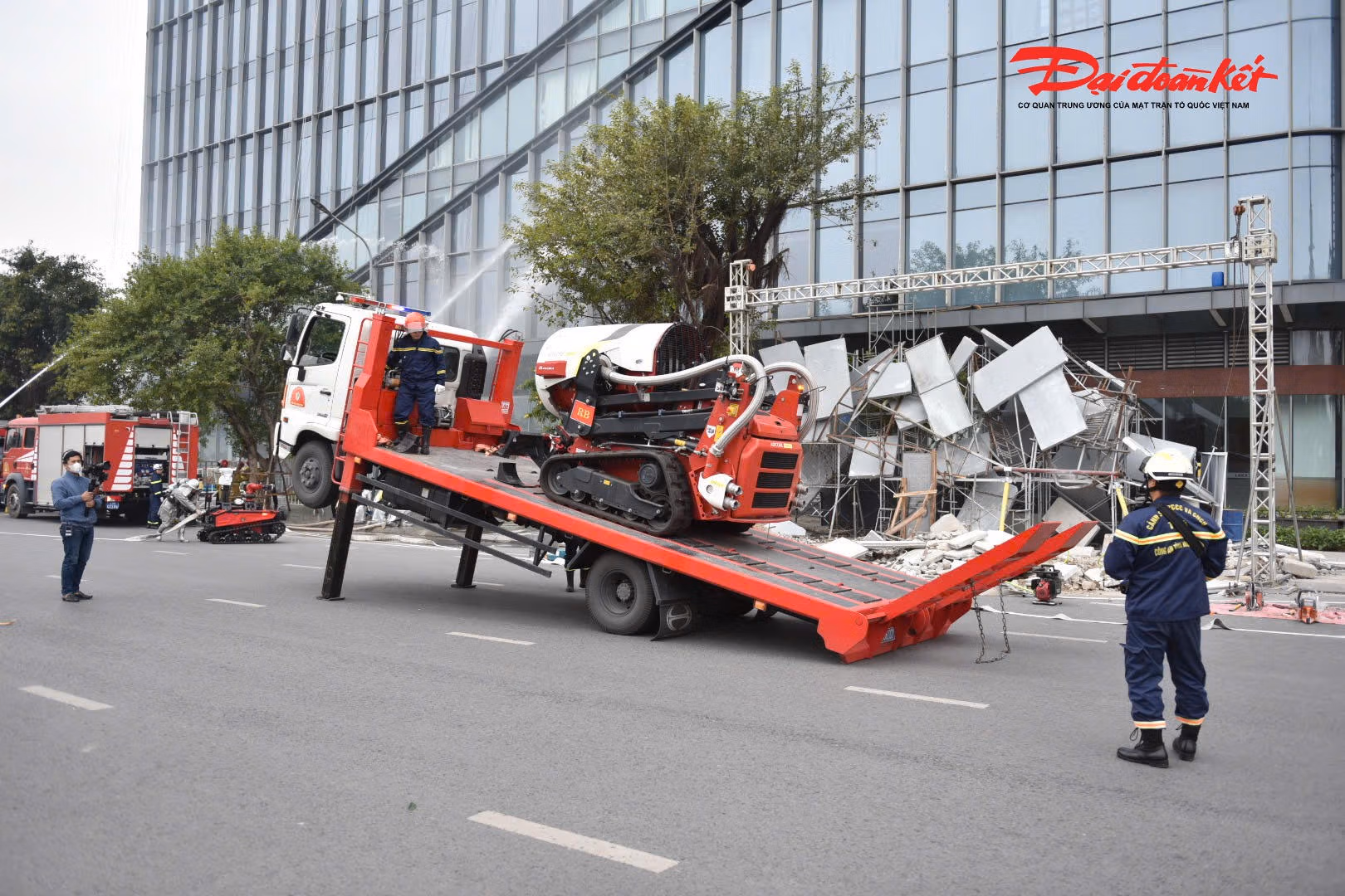 tại cuộc diễn tập có nhiều robot chữa cháy hiện đại và thiết bị bay không người lái phục vụ trinh sát, đồng thời, Quân chủng Phòng không - Không quân cũng điều động 2 máy bay trực thăng để cứu hộ cứu nạn.