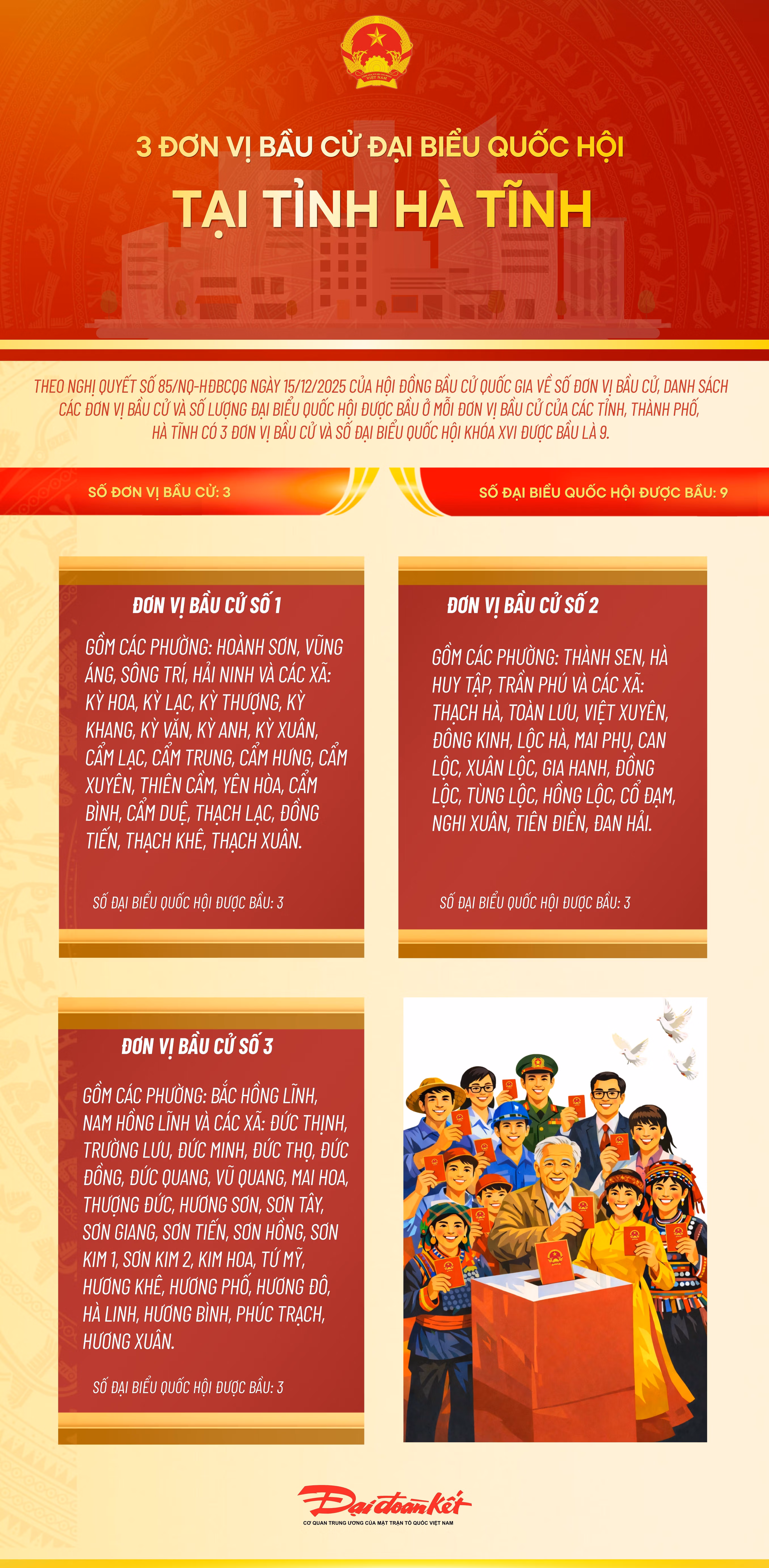 Infographic: 3 đơn vị bầu cử đại biểu Quốc hội tại tỉnh Hà Tĩnh