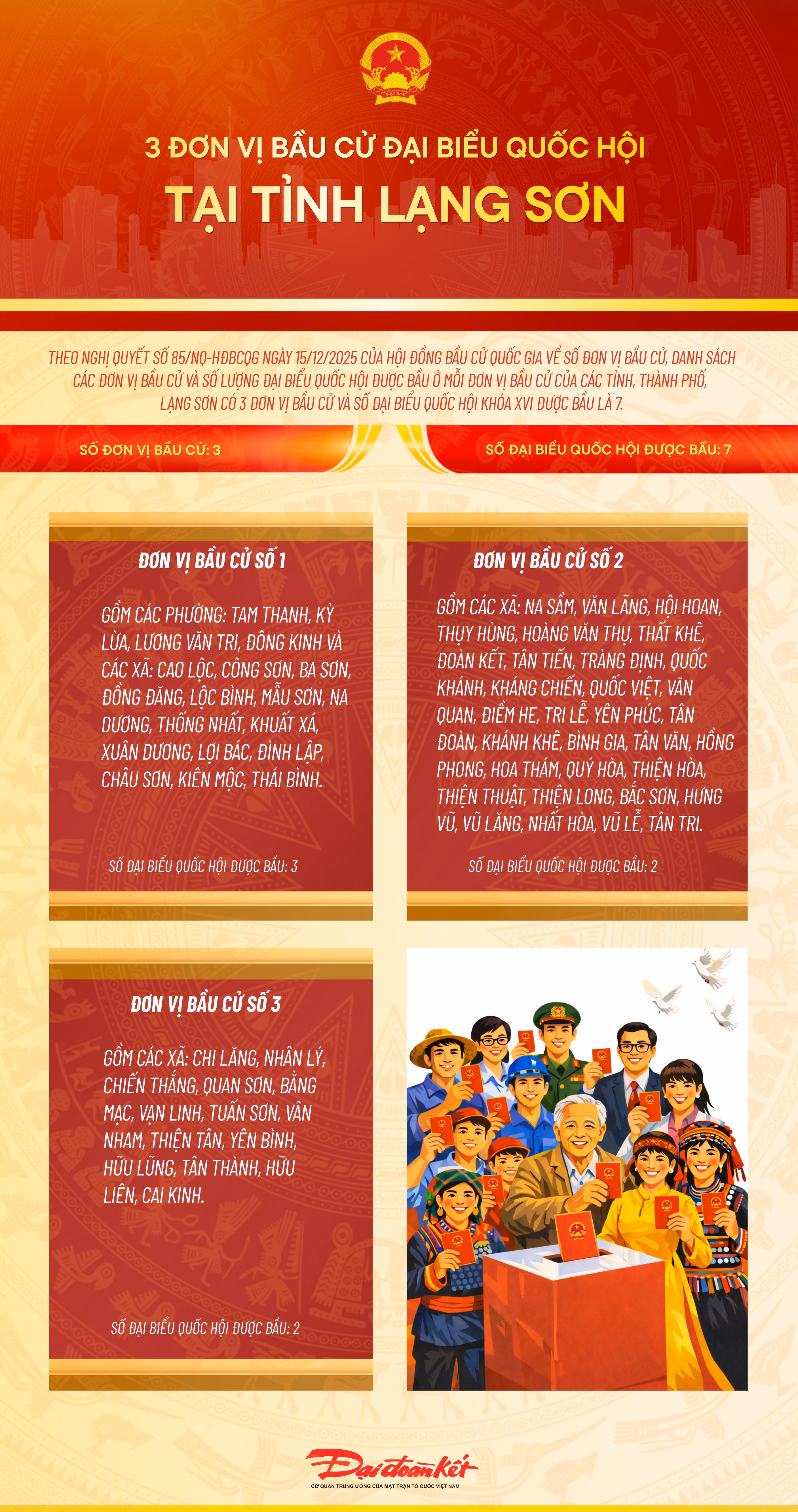 Infographic: 3 đơn vị bầu cử đại biểu Quốc hội tại tỉnh Lạng Sơn