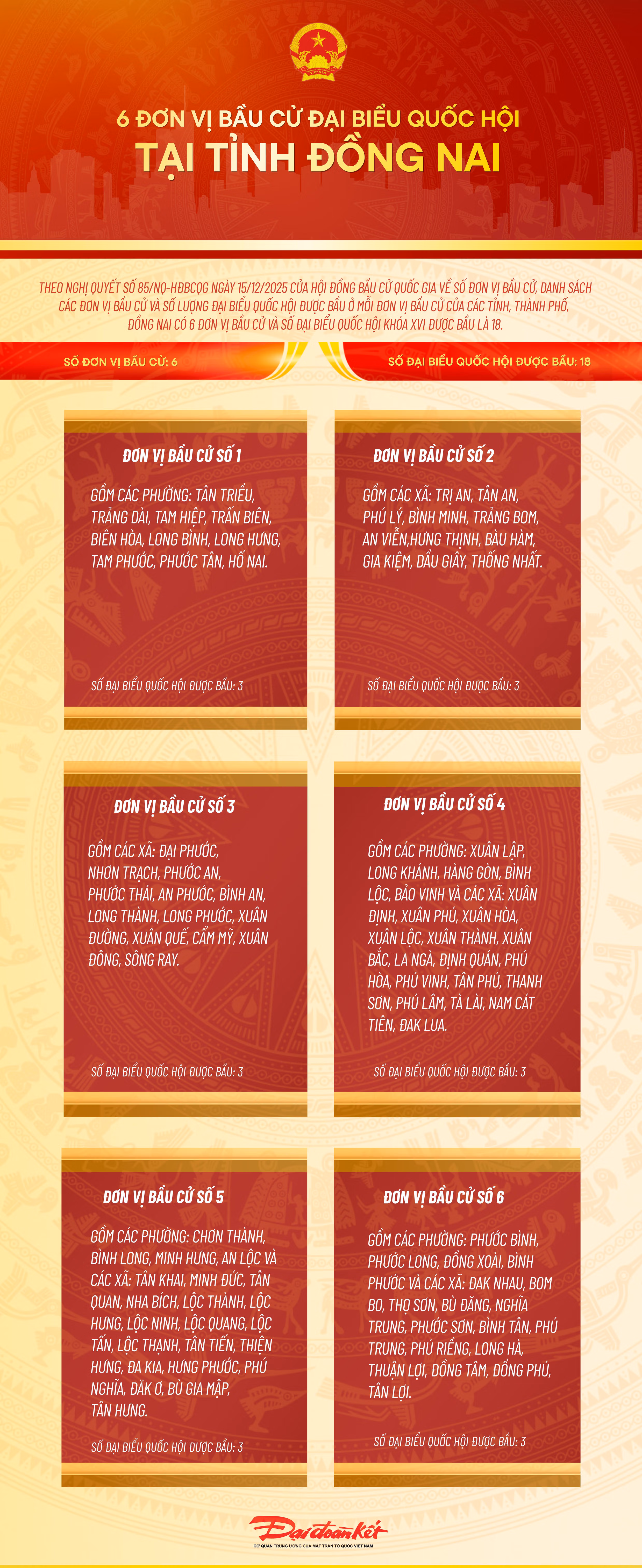 Infographic: 6 đơn vị bầu cử đại biểu Quốc hội tại tỉnh Đồng Nai