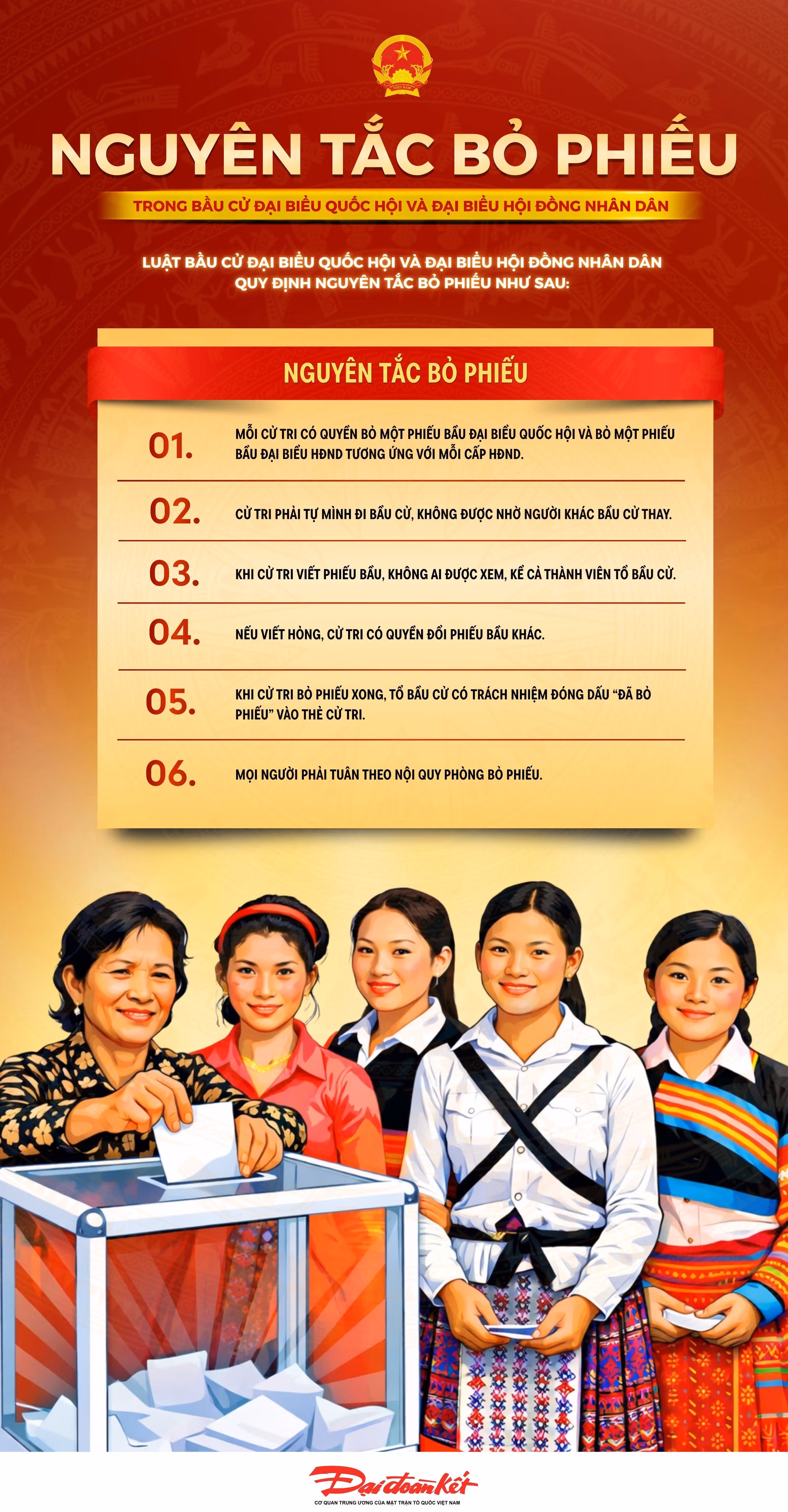 Infographic: Các nguyên tắc cử tri cần biết khi tham gia bỏ phiếu bầu cử