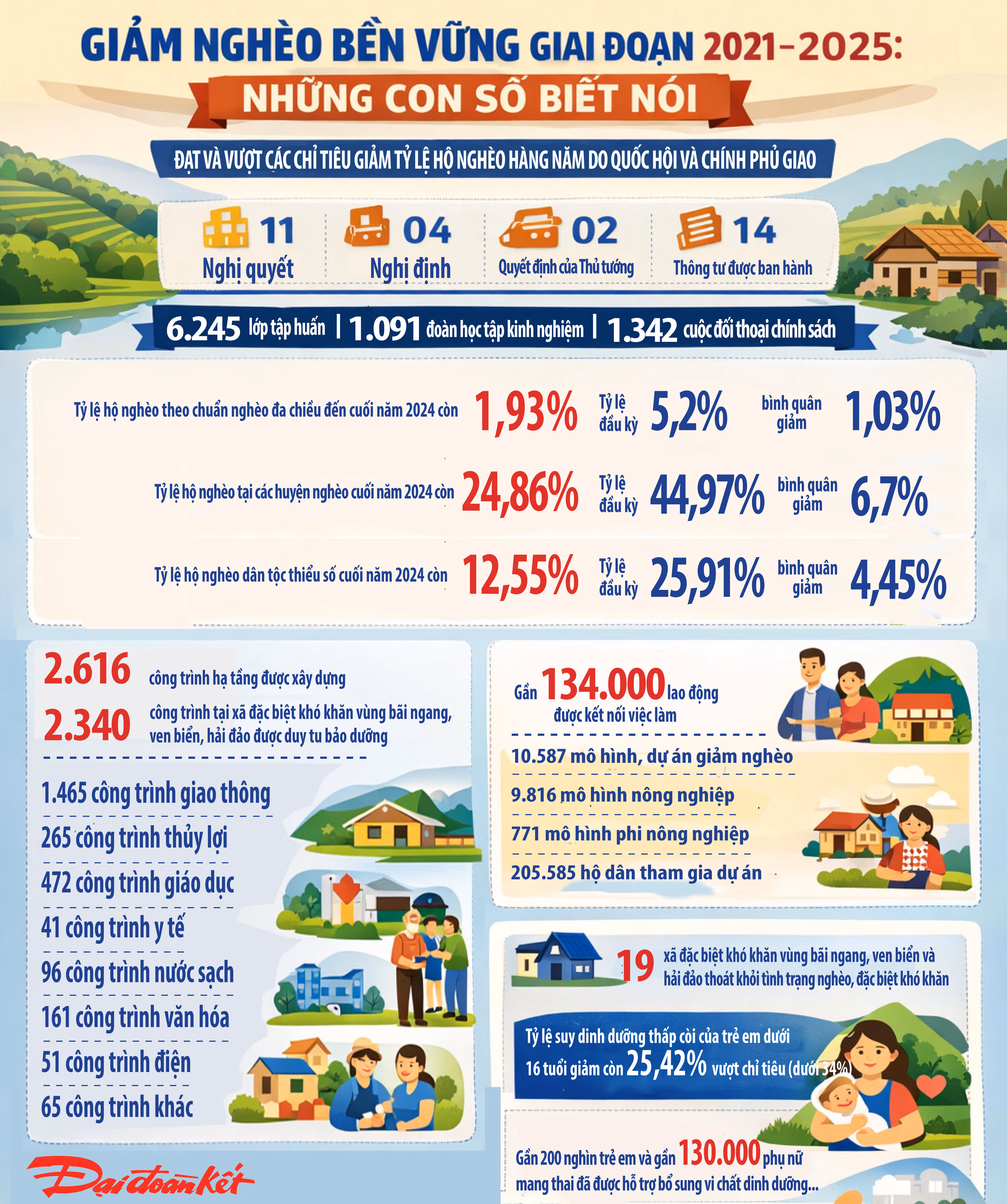 Nhờ thực hiện nhiều giải pháp đồng bộ, từ cung cấp thông tin chính sách, nguồn vốn, quá trình triển khai giám sát chặt chẽ, theo đánh giá của Ban chỉ đạo Trung ương, chương trình Mục tiêu quốc gia giảm nghèo bền vững đã đạt và vượt các chỉ tiêu giảm tỷ lệ hộ nghèo hằng năm do Quốc hội và Chính phủ giao.