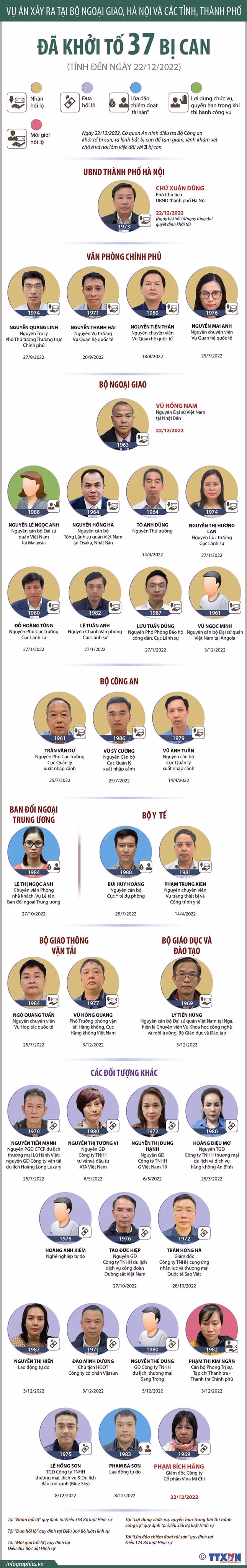 [Infographics] Vụ án Cục Lãnh sự, Bộ Ngoại giao: Đã khởi tố 37 bị can