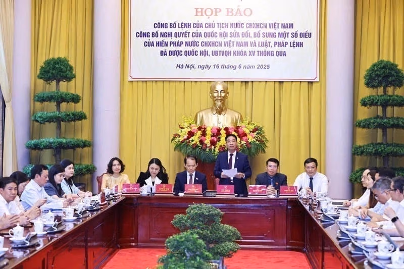 Chiều 16/6, tại Phủ Chủ tịch, Văn phòng Chủ tịch nước tổ chức họp báo công bố Lệnh của Chủ tịch nước công bố Nghị quyết của Quốc hội sửa đổi, bổ sung một số điều của Hiến pháp nước Cộng hòa xã hội chủ nghĩa Việt Nam và Luật Tổ chức chính quyền địa phương (sửa đổi), Pháp lệnh sửa đổi, bổ sung Điều 10 của Pháp lệnh Dân số, đã được Quốc hội, Ủy ban Thường vụ Quốc hội khóa XV thông qua.