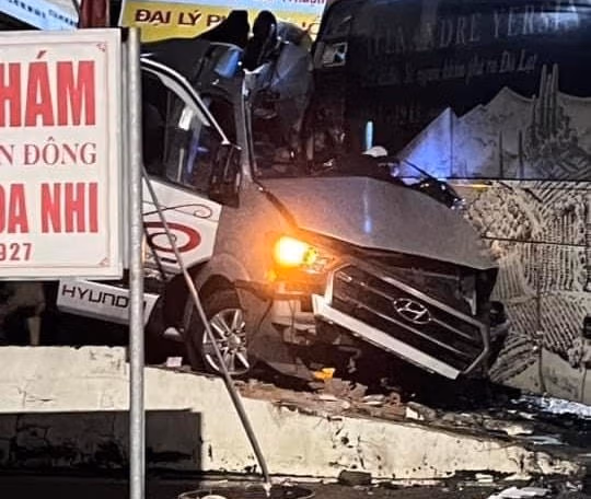 Sau đó, Tính điều khiển xe đi qua phần đường hướng lưu thông thông Đà Lạt - Dầu Giây và đâm vào xe ô tô 16 chỗ biển số 86B-015.75 do anh Nguyễn Văn Cảnh (33 tuổi, ngụ H.Đức Linh, tỉnh Bình Thuận) điều khiển xe chở theo 8 người đang lưu thông hướng ngược lại.