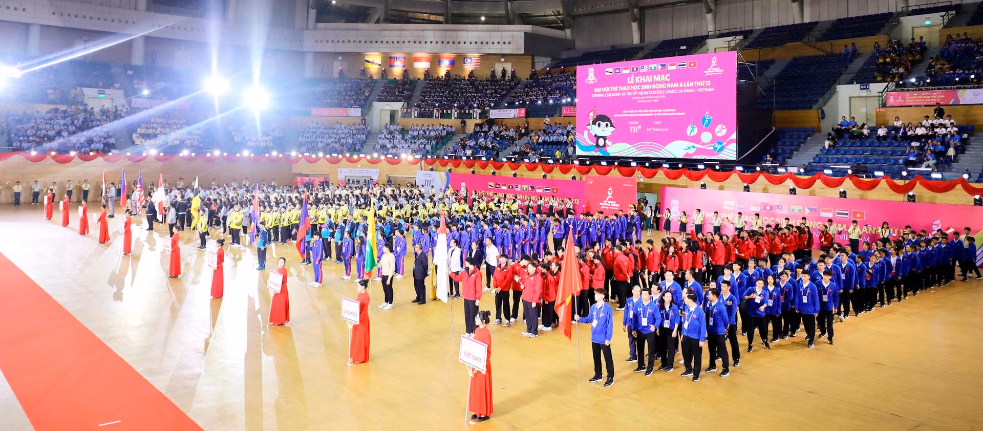 ASEAN Schools Games - ASG lần thứ 13 quy tụ 1.300 vận động viên học sinh, huấn luyện viên từ 10 quốc gia trong khu vực. Việt Nam có 190 thành viên tham gia 6/6 bộ môn của Đại hội. Điểm nhấn của buổi khai mạc là Lễ diễu hành trọng thể của 10 đoàn thể thao: Brunei, Campuchia, Indonesia, Lào, Malaysia, Myanmar, Philippines, Singapore, Thái Lan và chủ nhà Việt Nam.