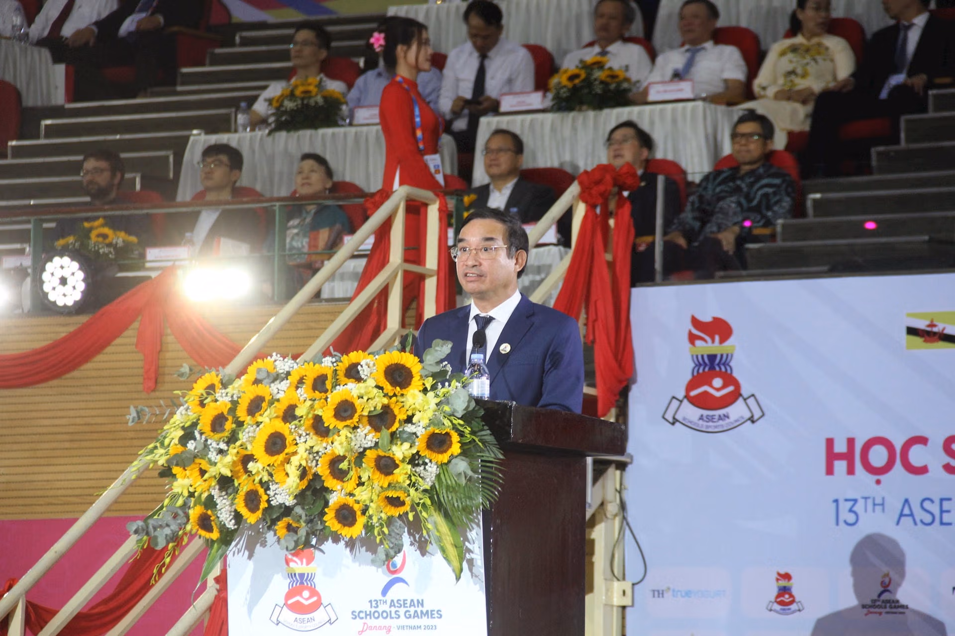 Phát biểu khai mạc, Bộ trưởng Bộ GDĐT Nguyễn Kim Sơn – Trưởng ban Chỉ đạo Đại hội chia sẻ: “ASEAN Schools Games – ASG lần thứ 13 là ngày hội thể thao lớn nhất dành cho học sinh trung học trong Hiệp hội các quốc gia Đông Nam Á nhằm thúc đẩy tình đoàn kết, hữu nghị quốc tế, sự tôn trọng, hiểu biết lẫn nhau giữa các quốc gia vì sự phát triển hài hòa giữa thể chất và tinh thần của học sinh, vì một thế hệ trẻ Đông Nam Á hội nhập và phát triển.