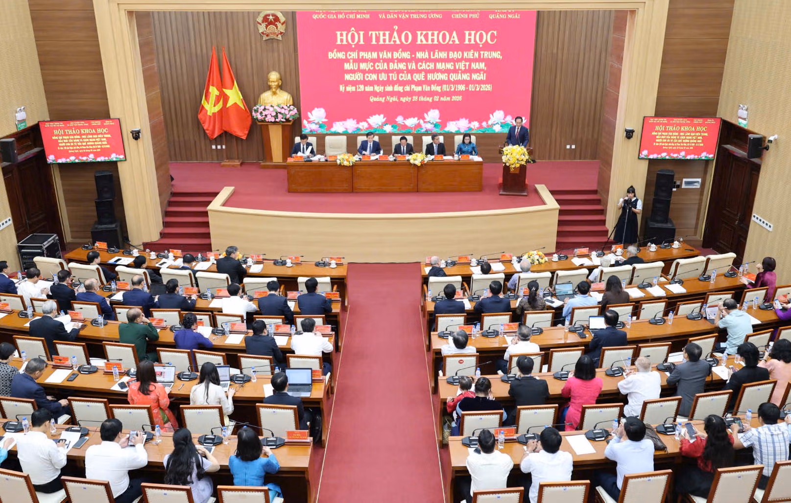 Chiều 28/2, tại Quảng Ngãi, Tỉnh ủy Quảng Ngãi phối hợp với Học viện Chính trị quốc gia Hồ Chí Minh, Ban Tuyên giáo và Dân vận Trung ương, Văn phòng Chính phủ tổ chức khai mạc Hội thảo khoa học với chủ đề: “Đồng chí Phạm Văn Đồng - Nhà lãnh đạo kiên trung, mẫu mực của Đảng và cách mạng Việt Nam, người con ưu tú của quê hương Quảng Ngãi”.