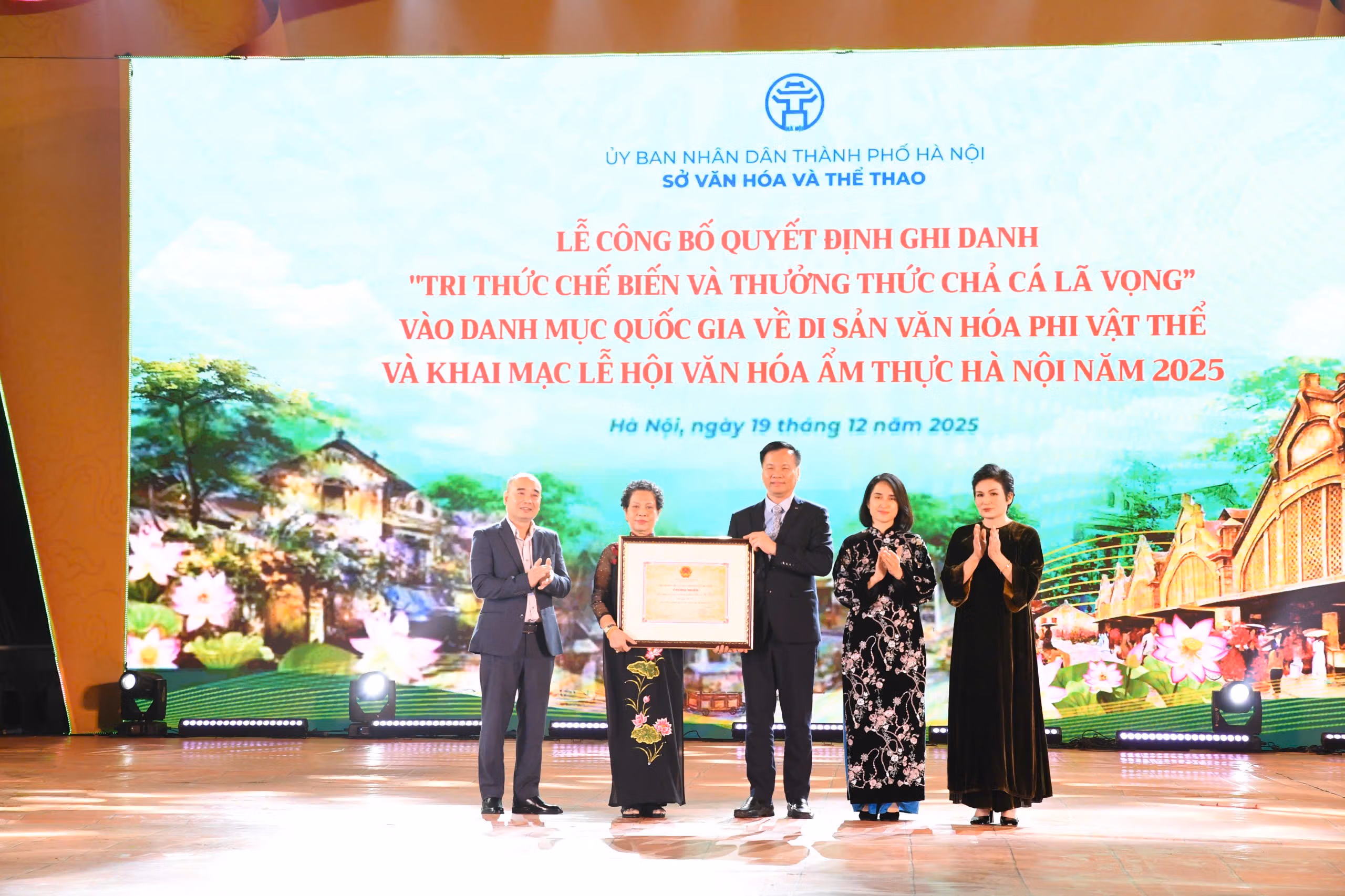 Tại lễ khai mạc, Ban tổ chức đã công bố quyết định của Bộ Văn hóa, Thể thao và Du lịch ghi danh “Tri thức chế biến và thưởng thức chả cá Lã Vọng (thành phố Hà Nội)” vào danh mục di sản văn hóa phi vật thể Quốc gia. Như vậy, đến nay, Hà Nội có 8 di sản ẩm thực đã được ghi danh trong danh mục di sản văn hóa phi vật thể Quốc gia, gồm: phở Hà Nội; nghề làm cốm Mễ Trì (phường Tứ Liêm); nghề làm trà sen Quảng An (phường Tây Hồ); nghề làm xôi Phú Thượng (phường Phú Thượng); nghề làm bánh cuốn Thanh Trì (phường Vĩnh Hưng); tri thức nấu cỗ Bát Tràng (xã Bát Tràng) và Tri thức chế biến và thưởng thức chả cá Lã Vọng.