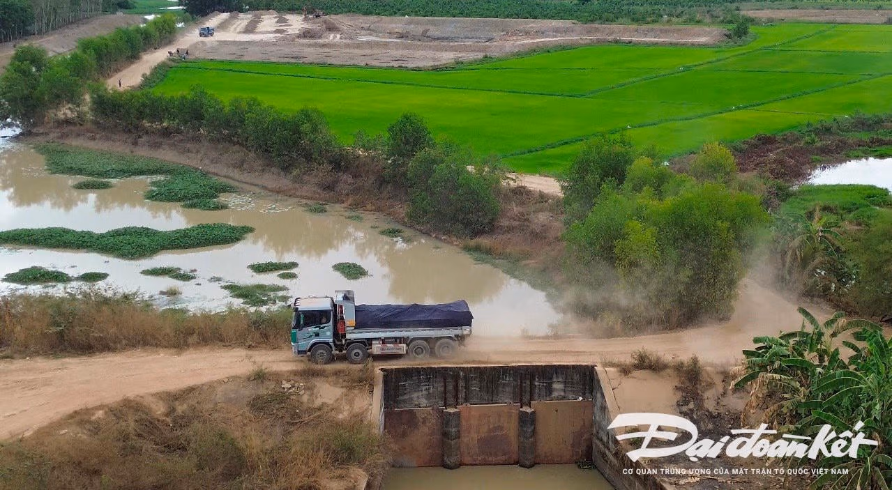Tại đây có nhiều lượt xe ben chở đất ra vào, trong đó có 2 chiếc xe ben 4 chân mang biển số tỉnh Bình Thuận 86H-015.. và 86H-010.. hoạt động khá dày, chở đất, cát tập kết tại huyện Định Quán, tỉnh Đồng Nai.