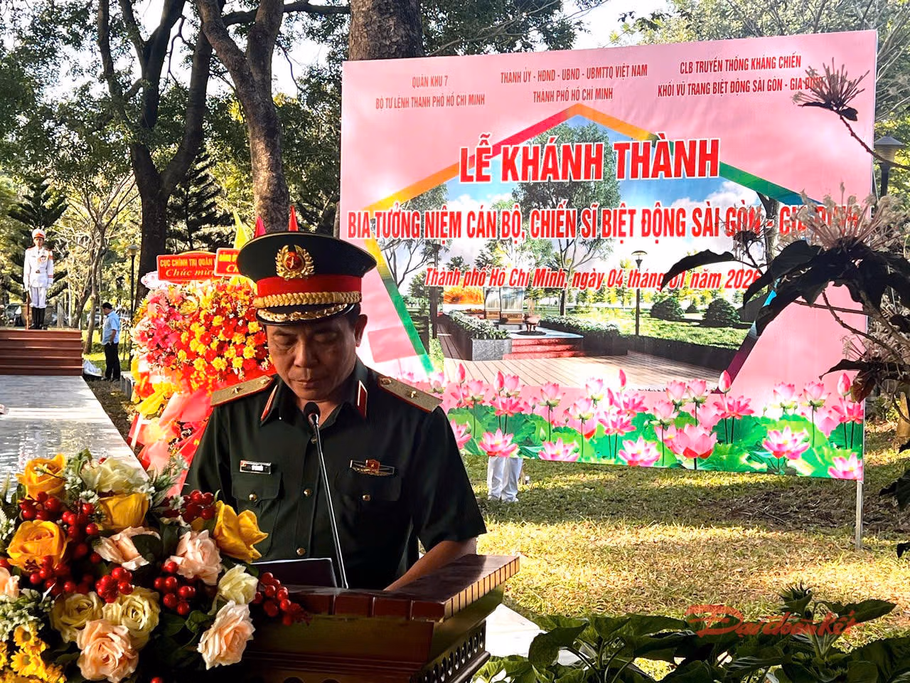 Phát biểu tại Lễ khánh thành, Thiếu tướng Vũ Văn Điền, Tư lệnh Bộ Tư lệnh TP Hồ Chí Minh khẳng định đã ôn lại chặng đường hình thành, chiến đấu và những chiến công vang dội của lực lượng Biệt động Sài Gòn – Gia Định, một lực lượng đặc biệt tinh nhuệ của Quân đội nhân dân Việt Nam hoạt động ngay trong lòng địch.