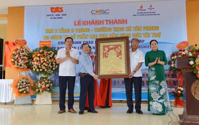 Ngày 26/8, Công ty cổ phần Lọc hóa dầu Bình Sơn (BSR) đã phối hợp với Đảng ủy, HĐND, UBND xã Tân Phong tổ chức Lễ khánh thành công trình Trường THCS Tân Phong (huyện Vũ Thư, tỉnh Thái Bình) do BSR tài trợ.