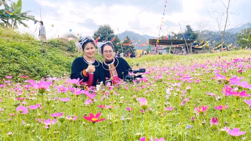 Trên những sườn đồi xanh mướt, nơi mây và núi hòa quyện, cánh đồng hoa rực rỡ sắc màu ở Khâu Đấng ngày Tết năm nay không chỉ có sắc màu của người Sán Chỉ, mà trở thành nơi hội tụ của các trang phục như áo dài truyền thống của người Việt, váy áo rực rỡ là trang phục truyền thống của người Mông, Dao, Tày, Nùng, Hoa…