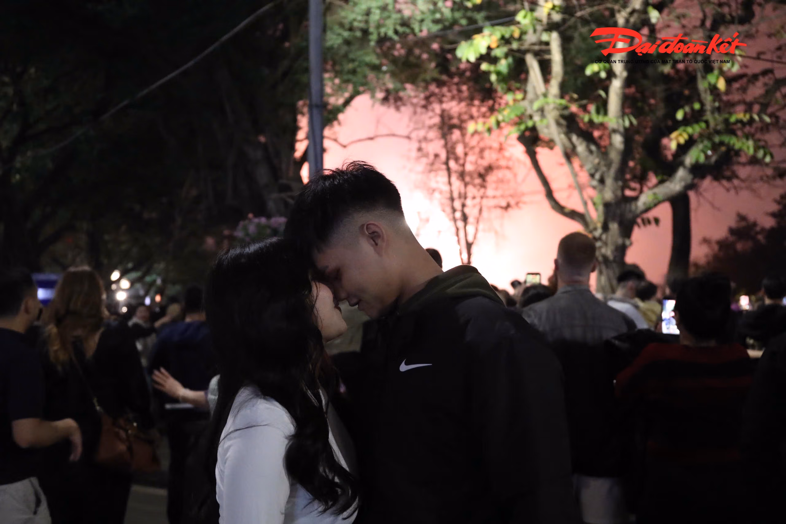 Trong ánh sáng rực rỡ của pháo hoa và đèn trang trí quanh hồ, những nụ hôn trao nhau trở thành điểm nhấn đầy cảm xúc của đêm giao thừa. Đó là cách người ta khép lại một năm cũ với bao bộn bề và mở ra năm mới bằng yêu thương, hy vọng.