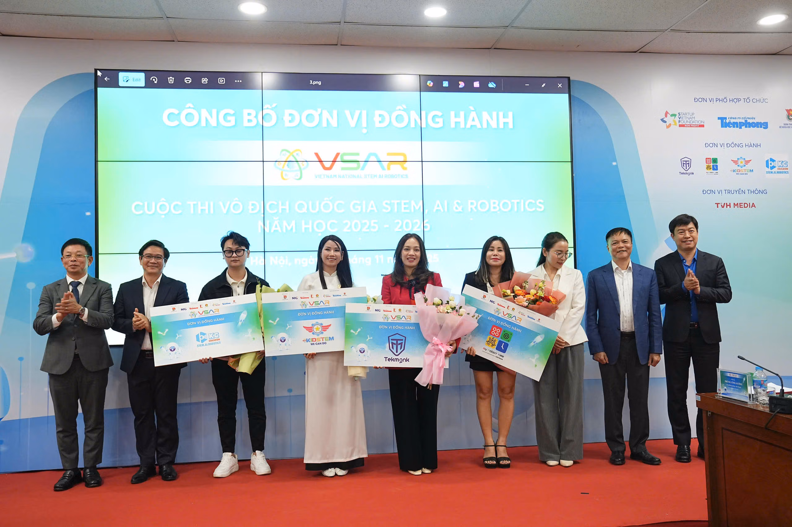 Chiều 28/11, Báo Tiền Phong phối hợp với Hội đồng Đội Trung ương, Trung tâm Đổi mới sáng tạo Quốc gia, Đại học Bách khoa Hà Nội và các đơn vị đồng hành tổ chức họp báo công bố Cuộc thi Vô địch Quốc gia STEM, AI và Robotics (VSAR) năm học 2025-2026.