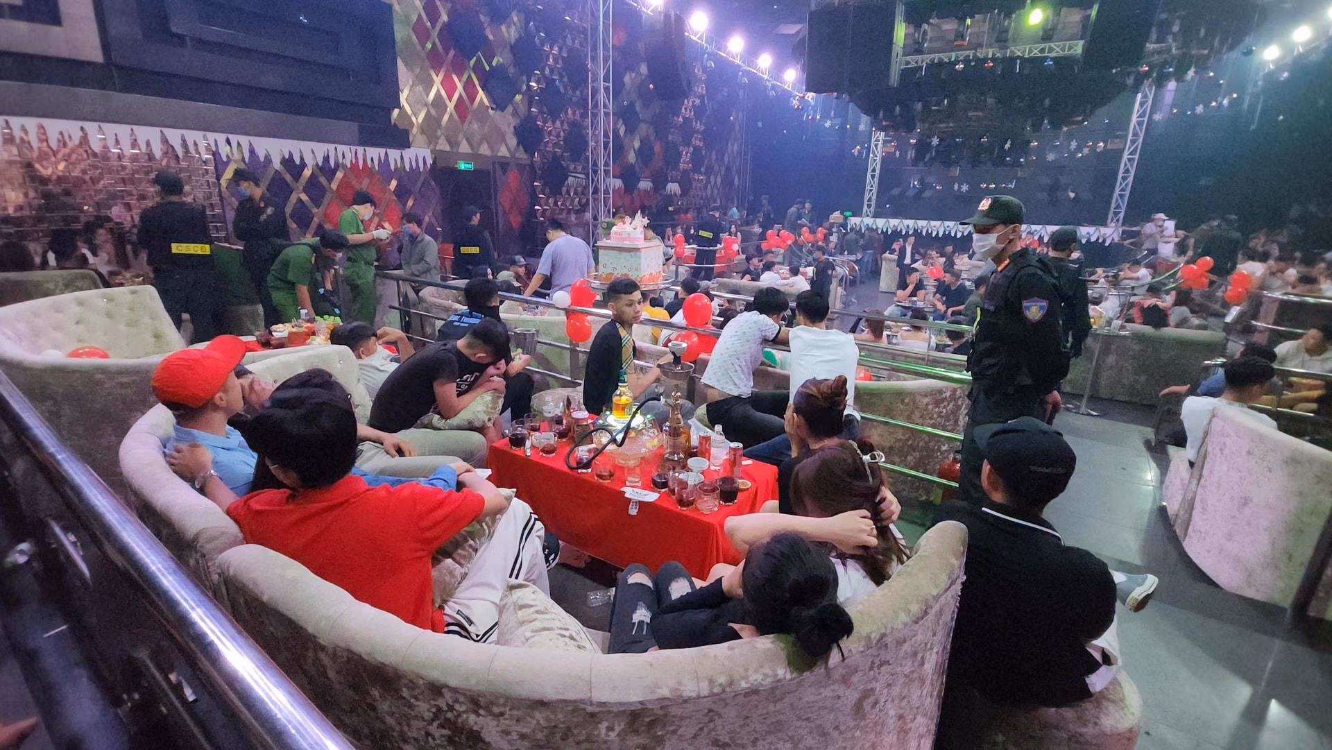 Tại hiện trường, lực lượng Công an đã tìm thấy nhiều viên nén và bịch nylon bên trong chứa ma túy tổng hợp vứt xuống dưới ghế và sàn nhà nhằm phi tang. Lực lượng Công an đã đưa 277 khách chơi và 23 nhân viên quá bar về trụ sở, qua test nhanh có 139 đối tượng dương tính với chất ma túy tổng hợp, chủ yếu là thuốc lắc (MDMA) và ma túy đá (Methaphetamine).