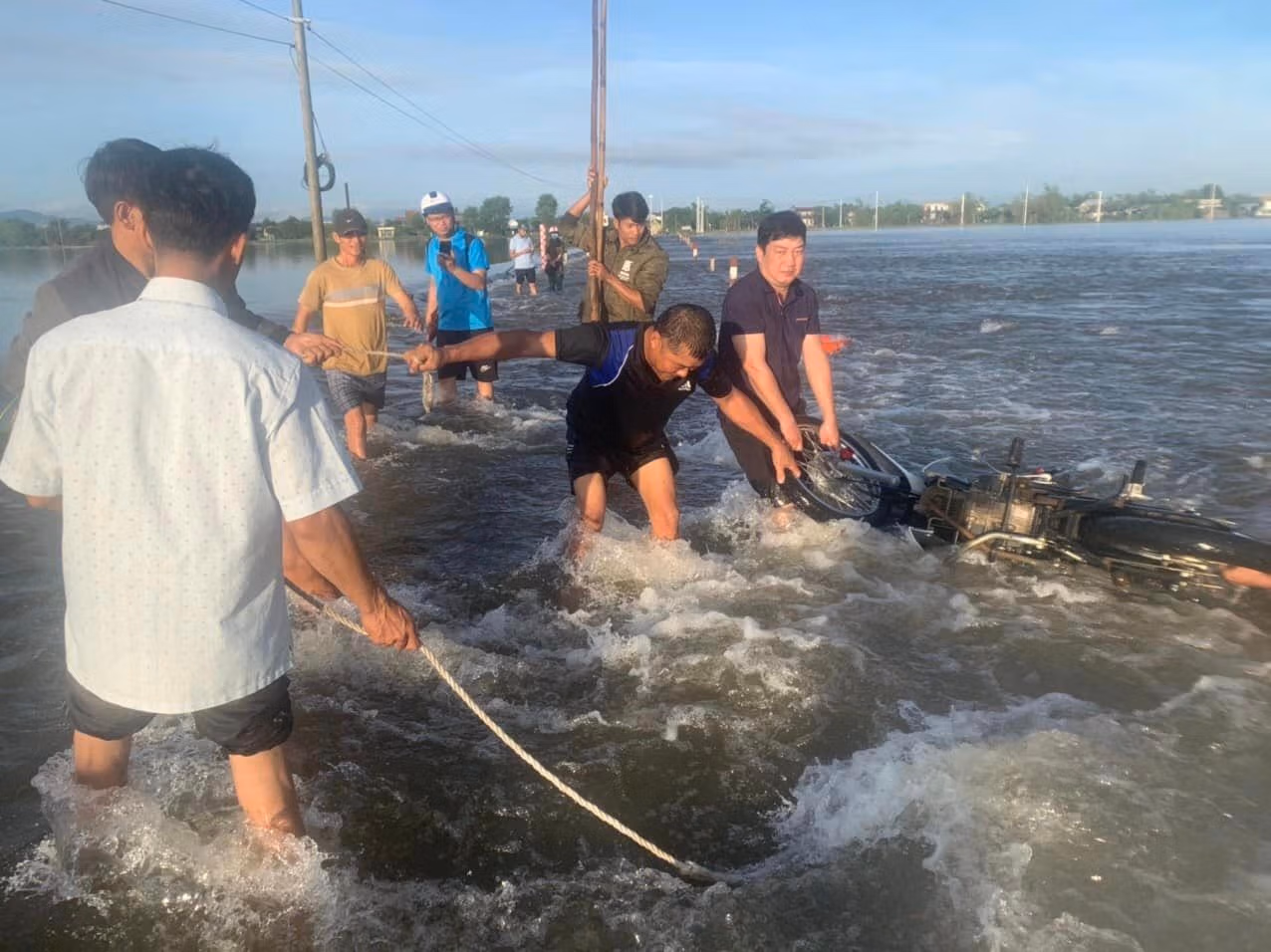 Ngày 25/10, thông tin từ UBND xã Quảng Phước (huyện Quảng Điền, tỉnh Thừa Thiên - Huế), lực lượng chức năng cùng người dân địa phương vừa ứng cứu kịp thời 2 vợ chồng bị nước cuốn khi đi qua đoạn đường bị ngập lụt.
