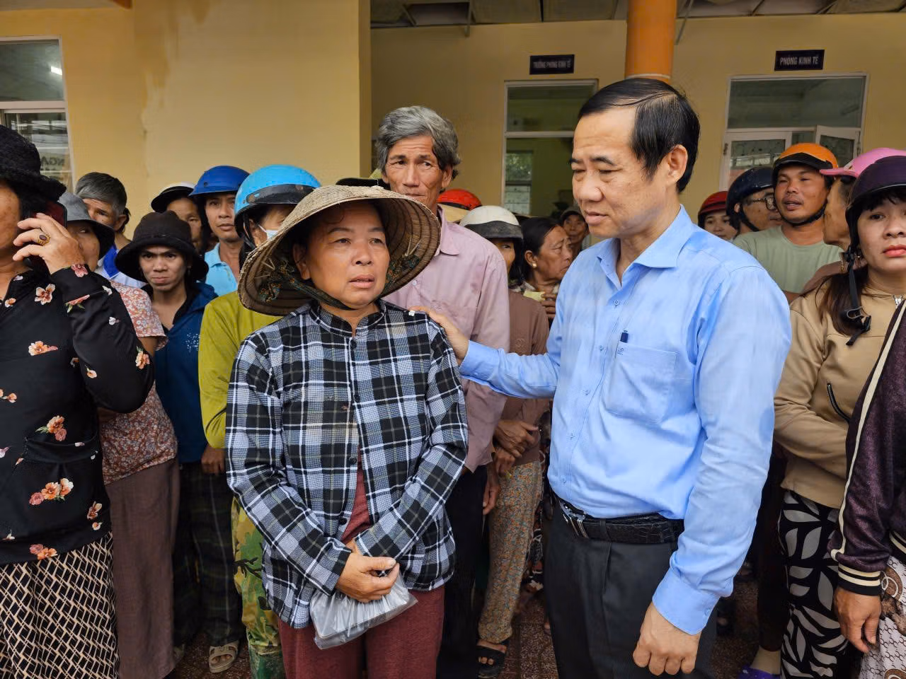 Tại xã Tuy An Đông – địa bàn bị ảnh hưởng nặng nề về người và tài sản, Phó Bí thư Đảng ủy MTTQ, các đoàn thể Trung ương Nguyễn Thái Học chia sẻ sâu sắc trước những mất mát, khó khăn mà bà con đang gánh chịu. Ông Nguyễn Thái Học bày tỏ mong muốn người dân tiếp tục đoàn kết, cùng chính quyền địa phương khẩn trương khắc phục hậu quả thiên tai, sớm ổn định cuộc sống và khôi phục sản xuất. Đoàn công tác đã trao 150 phần quà (mỗi phần gồm 1 triệu đồng tiền mặt cùng thực phẩm, nước uống và các nhu yếu phẩm thiết yếu) đến tận tay người dân vùng lũ.