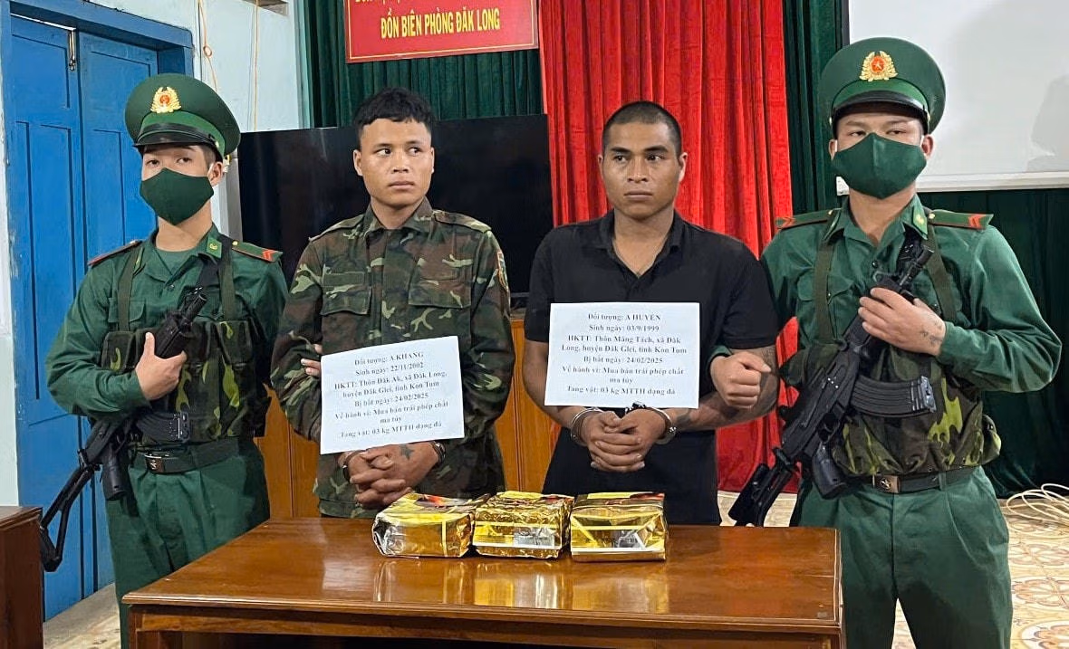 Trước đó, vào lúc 14h ngày 24/2, Phòng Phòng chống ma túy và tội phạm, Bộ Chỉ huy Bộ đội Biên phòng tỉnh Kon Tum phối hợp với Đoàn 2, Cục Phòng chống ma túy và tội phạm, Bộ Tư lệnh Bộ đội Biên phòng, Phòng PC 04 Công an tỉnh Kon Tum đã tổ chức mật phục tại địa bàn xã Đăk Môn, huyện Đăk Glei (tỉnh Kon Tum) bắt giữ đối tượng A Khang, sinh năm 2002, thường trú tại thôn Đăk Ák, xã Đăk Long (huyện Đăk Glei).