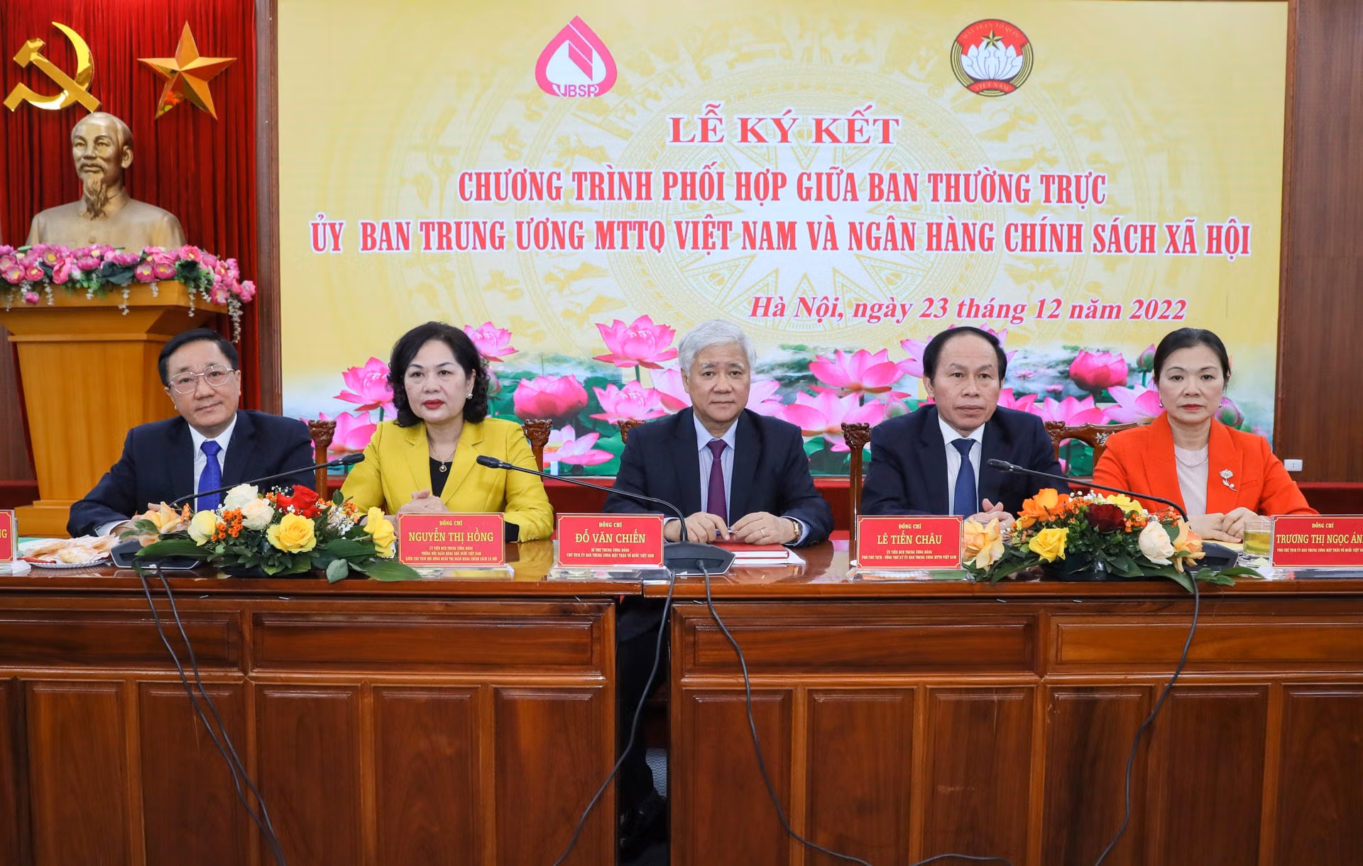 Phát biểu tại Lễ ký kết, Chủ tịch UBTƯ MTTQ Việt Nam Đỗ Văn Chiến bày tỏ sự trân trọng đối với những đóng góp của hệ thống Ngân hàng, đặc biệt là Ngân hàng chính sách xã hội đã đóng góp vào sự phát triển kinh tế xã hội chung của đất nước, trong đó có những hỗ trợ thiết thực cho vùng đồng bào dân tộc thiểu số, miền núi và những người yếu thế trong xã hội.