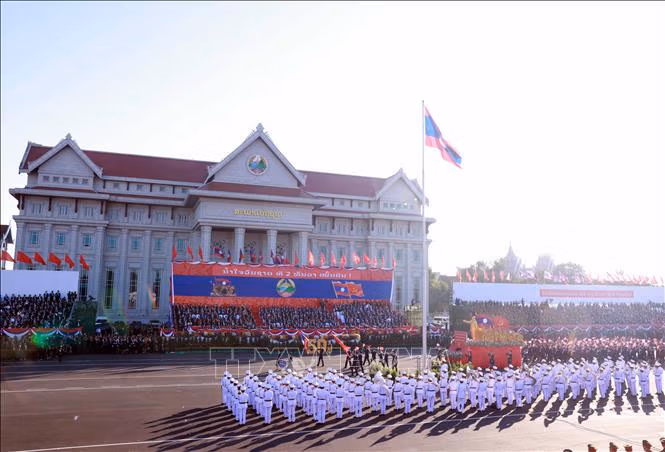 Sáng 2/12, Lễ kỷ niệm 50 năm Quốc khánh nước Cộng hòa Dân chủ Nhân dân Lào (2/12/1975 - 2/12/2025) đã diễn ra trọng thể tại quảng trường ThatLuang ở thủ đô Viêng Chăn (Lào).