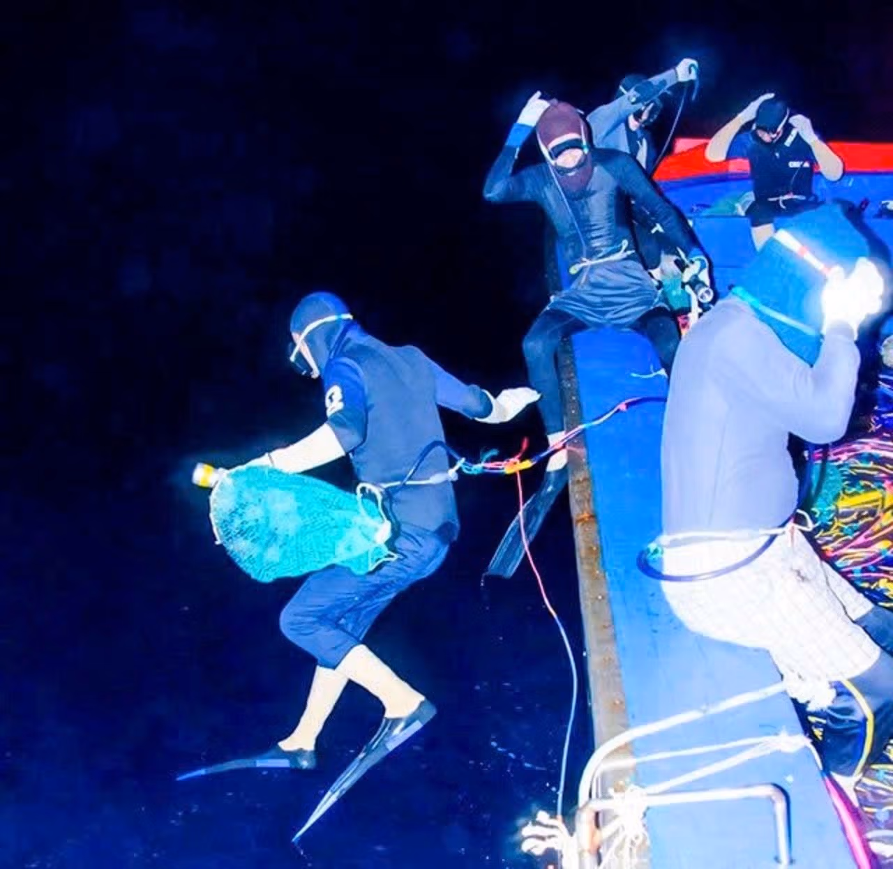 Nhiều ngư dân ở Gành Cả cho biết, nghề lặn biển có một đặc thù là phải áp sát các đảo đá, nơi tôm, cua, hải sâm sinh sống nhiều. Với thợ lặn, nhịp sinh học đảo lộn là ngày ngủ, đêm lặn. Cứ đến khoảng 17h, tàu của các ngư dân lại áp sát các đảo ở khu vực Hoàng Sa để bắt đầu công việc.