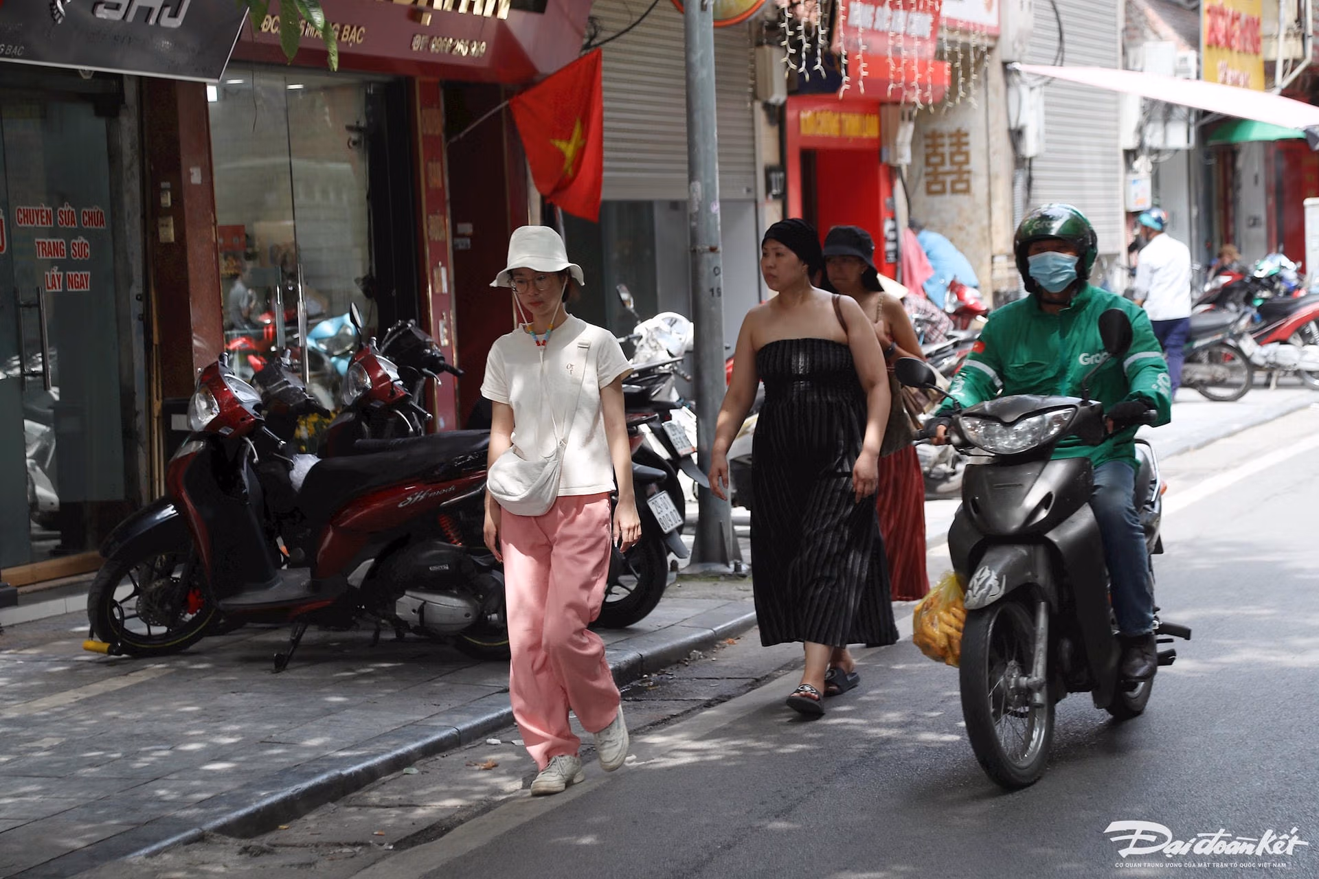 Tại nhiều tuyến đường ở Hà Nội, đặc biệt là khu vực phố cổ, tình trạng vỉa hè bị lấn chiếm rất phổ biến, khiến nhiều du khách bị "đẩy" xuống vỉa hè gây mất an toàn giao thông (ATGT).