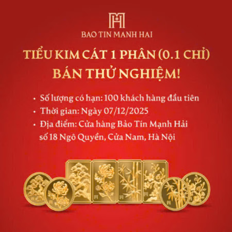 Hoạt động bán thử nghiệm "Tiểu Kim Cát" 1 phân kết thúc ngay khi phát hết số phiếu trong ngày 7/12/2025.