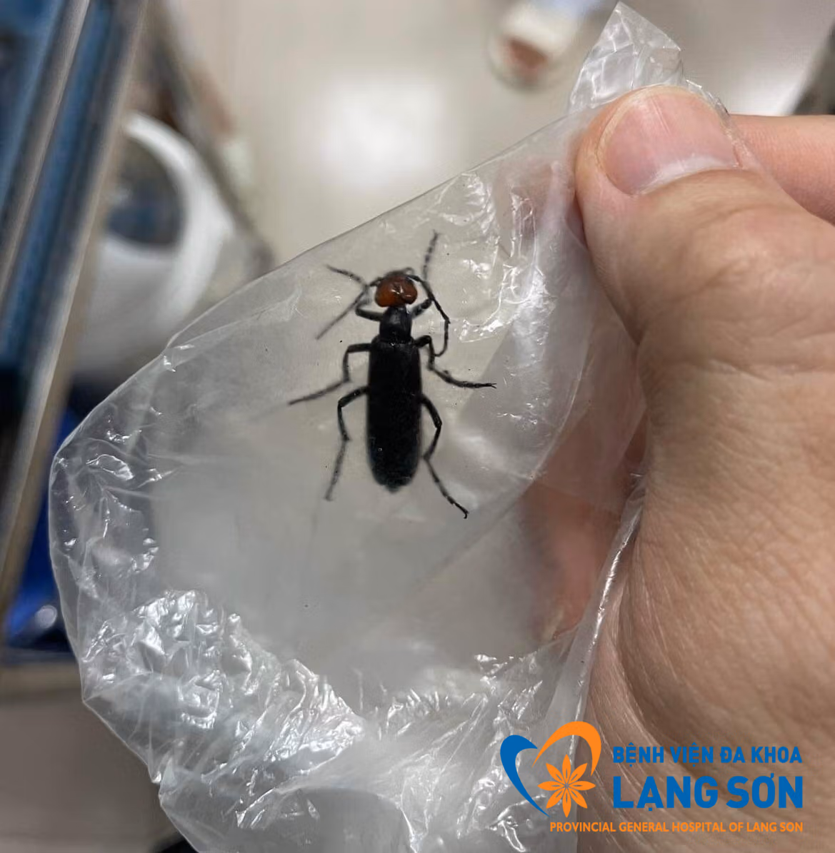 Sâu Ban Miêu do người nhà bệnh nhân mang đến Bệnh viện. Ảnh: Bệnh viện Đa khoa tỉnh Lạng Sơn.
