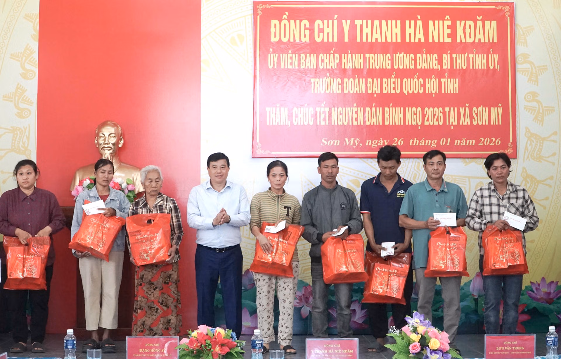 Ngày 26/1, ông Y Thanh Hà Niê Kđăm, Ủy viên Ban Chấp hành Trung ương Đảng, Bí thư Tỉnh ủy, Trưởng Đoàn Đại biểu Quốc hội tỉnh Lâm Đồng đã đến thăm, tặng quà và chúc Tết người có công với cách mạng, người có uy tín tiêu biểu trong đồng bào dân tộc thiểu số, các hộ nghèo, hộ cận nghèo và các gia đình có hoàn cảnh khó khăn tại xã Sơn Mỹ (tỉnh Lâm Đồng).
