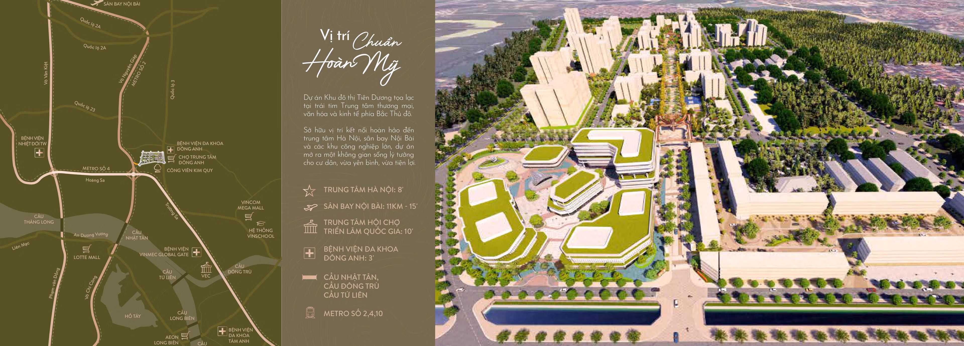 Khu vực xung quanh dự án được đầu tư hạ tầng đồng bộ với hệ thống quốc lộ, đường vành đai, các tuyến metro số 2, 4, 10, bên cạnh mạng lưới trung tâm dịch vụ - giáo dục - y tế như Bệnh viện Đa khoa Đông Anh, hệ thống trường học, trung tâm thương mại và các điểm vui chơi giải trí quy mô vùng.