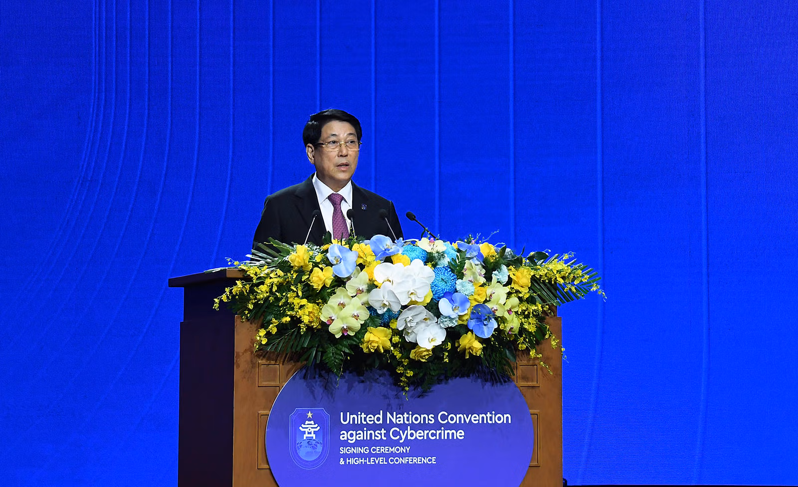Phát biểu tại phiên khai mạc, Chủ tịch nước Lương Cường nhấn mạnh, với chủ đề "Chống tội phạm mạng, chia sẻ trách nhiệm, hướng tới tương lai", Lễ mở ký hôm nay thể hiện tinh thần đoàn kết quốc tế và cam kết chung của các quốc gia cùng xây dựng một không gian mạng an toàn, lành mạnh và bền vững.