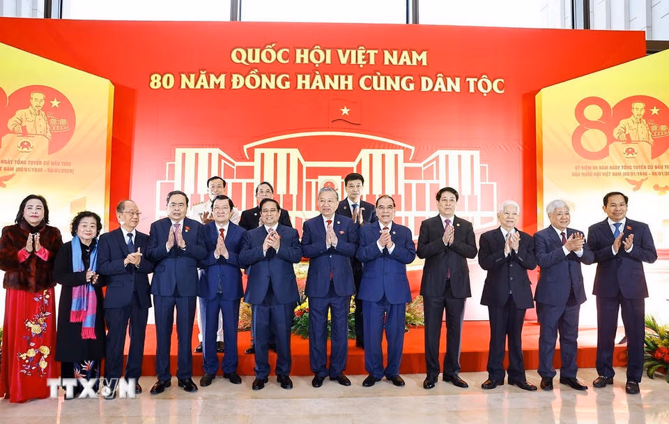Sáng 6/1/2026, tại Hà Nội, Tổng Bí thư Tô Lâm, các đồng chí lãnh đạo, nguyên lãnh đạo Đảng, Nhà nước dự Lễ kỷ niệm 80 năm Ngày Tổng tuyển cử đầu tiên bầu Quốc hội Việt Nam.