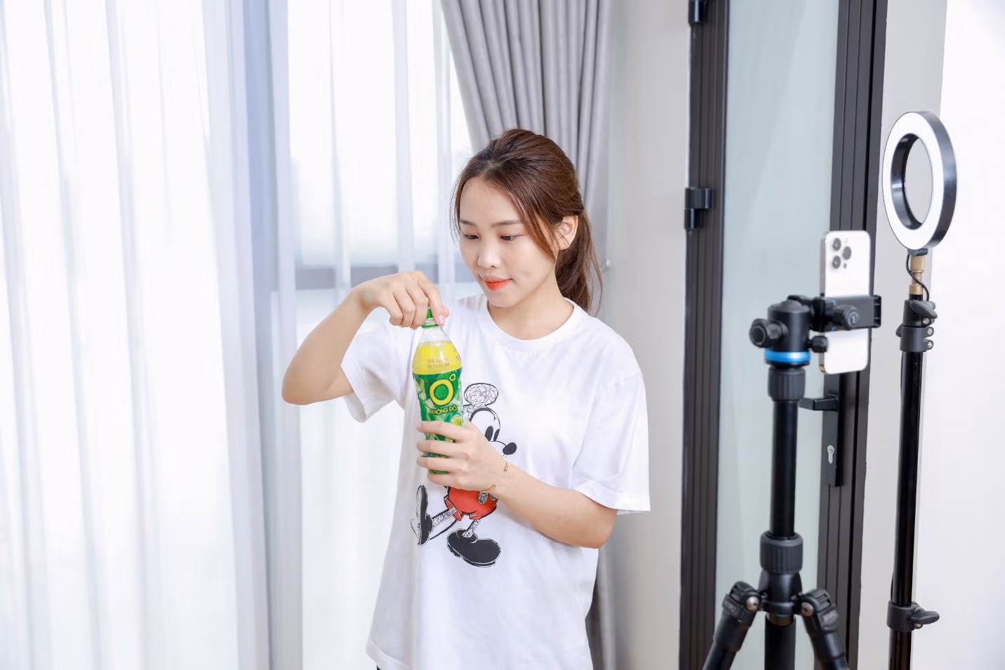 Đằng sau những clip tích cực là hàng giờ quay và chỉnh sửa, có những hôm Hân stress đến mức "chỉ muốn tắt máy". Nhưng thay vì dừng lại, cô chọn cách đơn giản: mở tủ lạnh, thưởng thức chai Trà Xanh Không Độ mát lạnh.