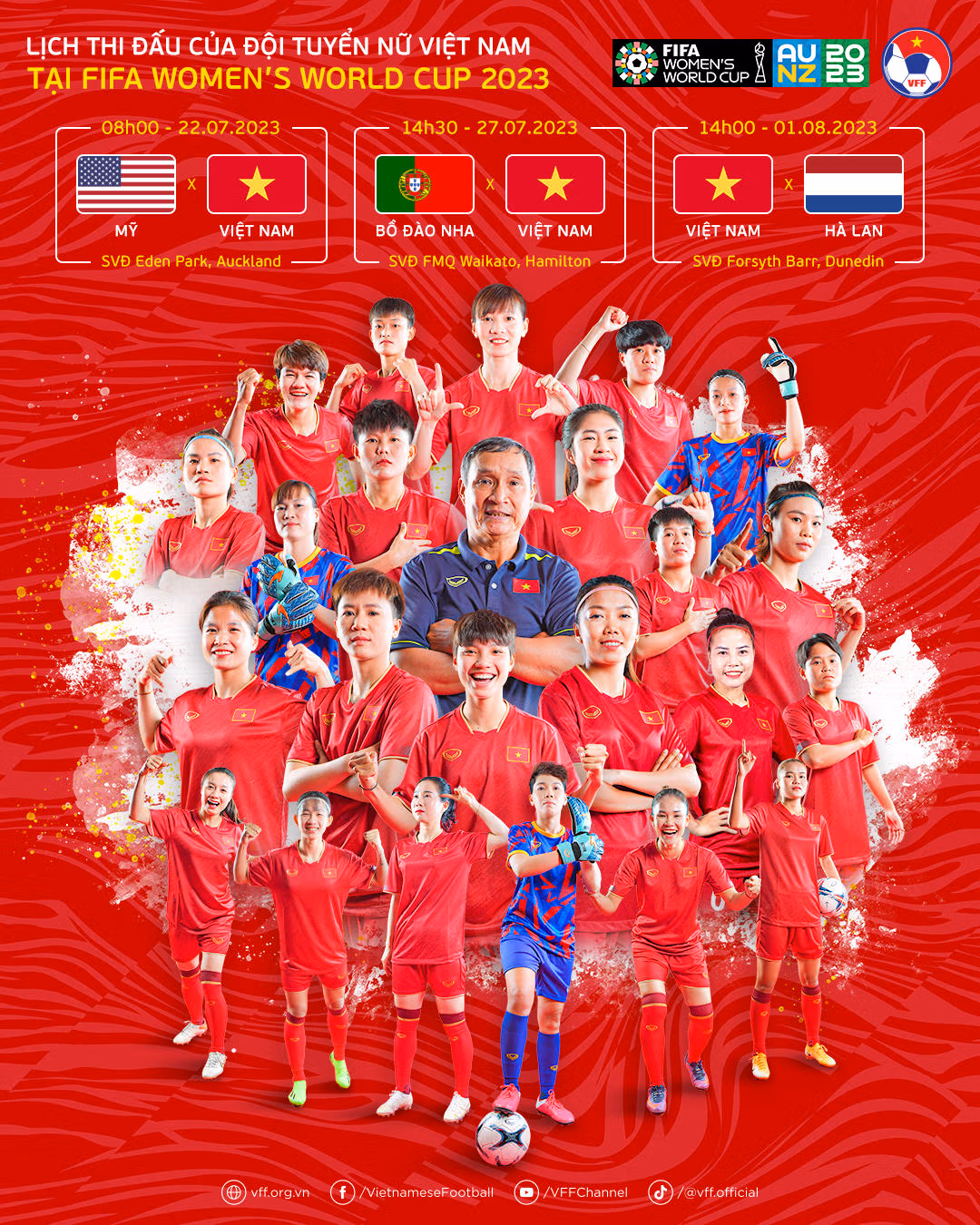 Ngay trận mở màn diễn ra ngày 22/7, các cô gái Việt Nam đối đầu với đội đương kim vô địch Mỹ. Ngày 27/7, Tuyển Nữ Việt Nam gặp Tuyển Bồ Đào Nha và ngày 1/8 sẽ gặp đội Hà Lan ở lượt trận cuối vòng bảng.