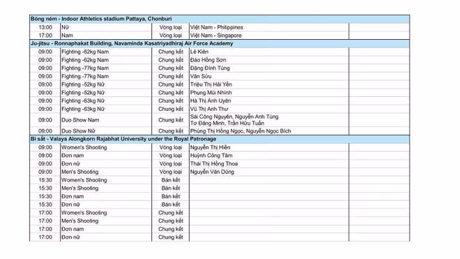 Đoàn thể thao Việt Nam cũng sẽ bước vào thi đấu ở nhiều môn mũi nhọn hứa hẹn sẽ giành huy chương Vàng ngay trong ngày thi đấu chính thức đầu tiên tại SEA Games 33.
